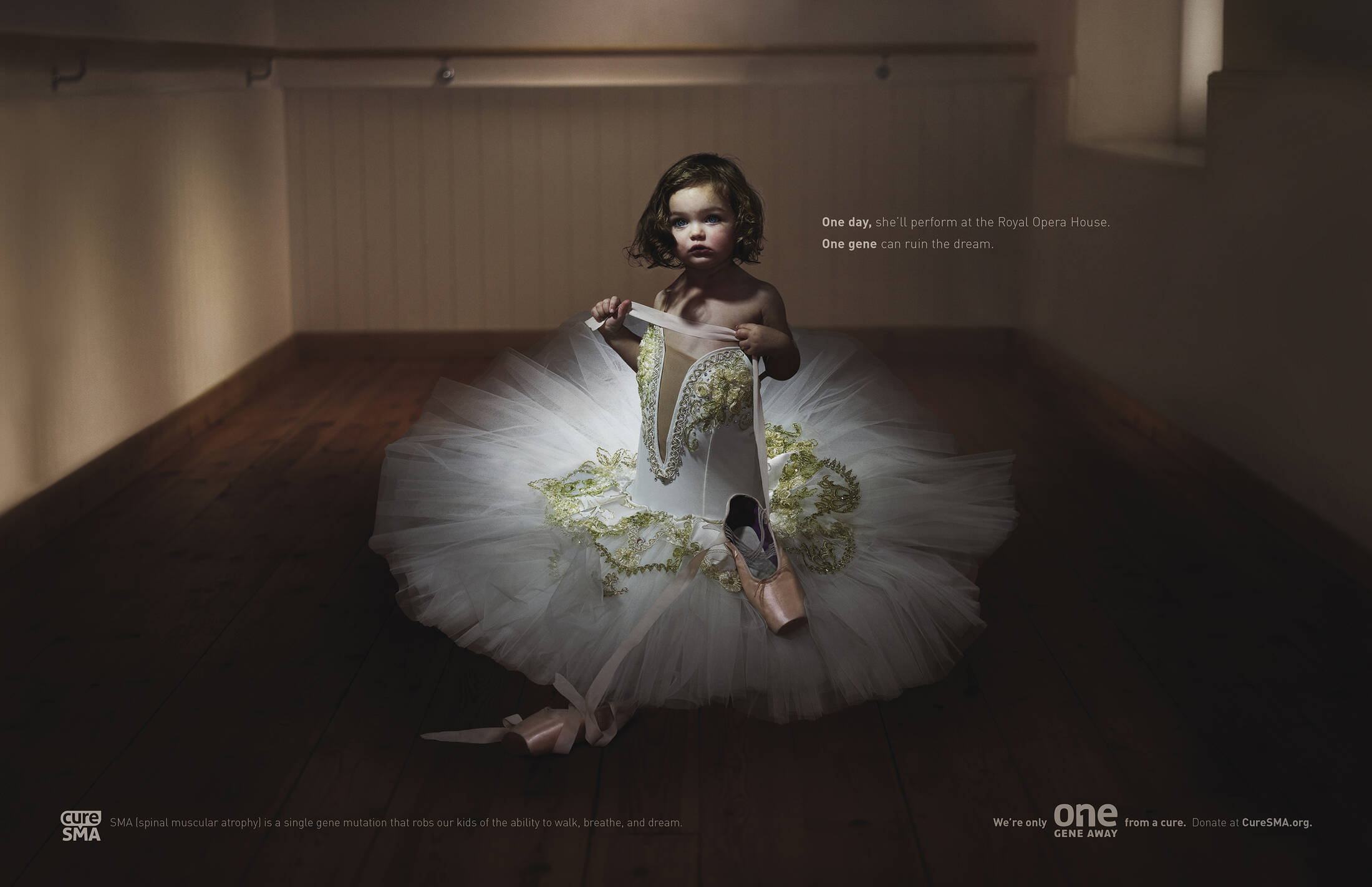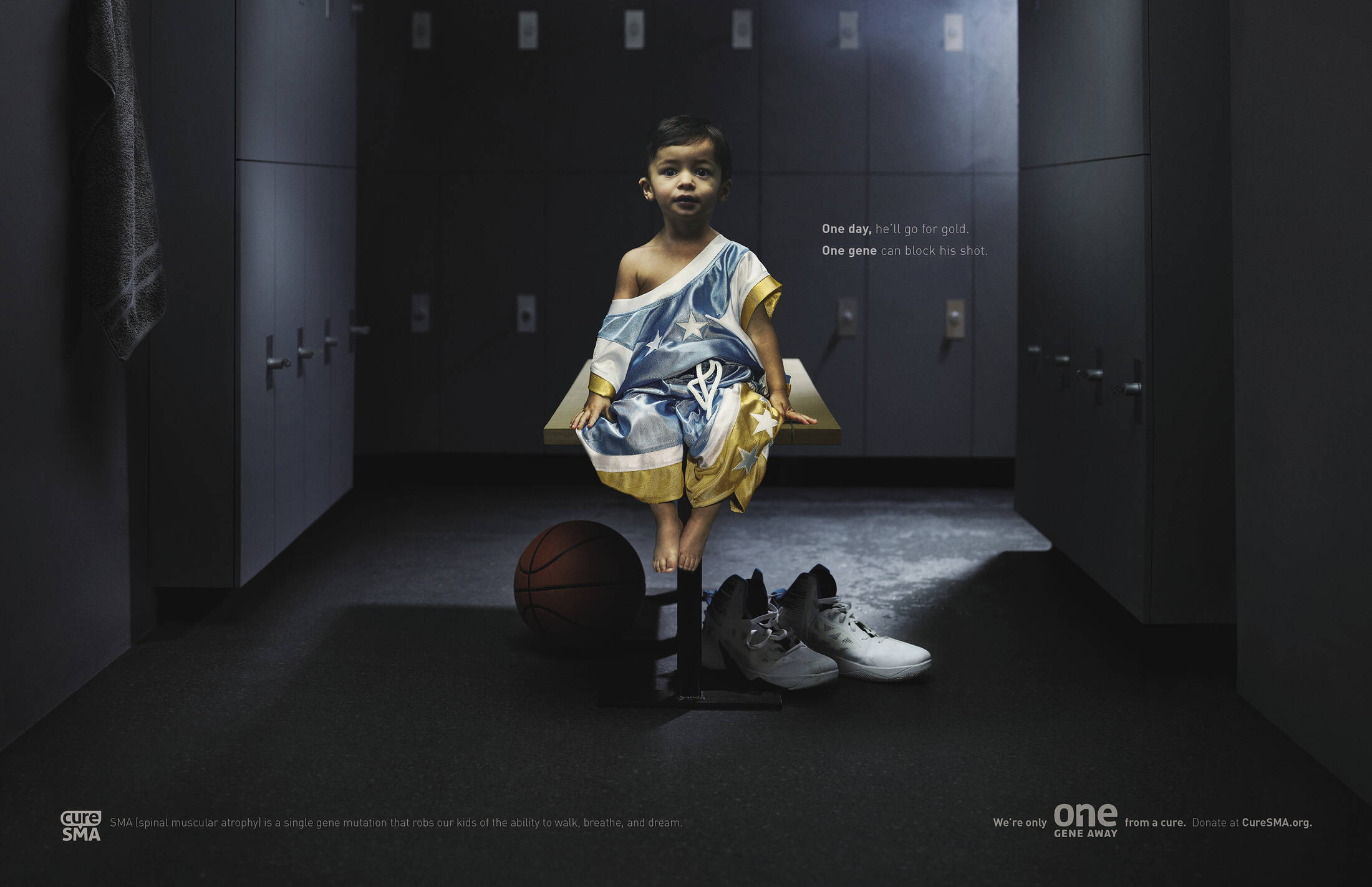 This professional campaign titled 'One Gene Away - Basketball, One Gene Away - Ballerina' was published in United States in February, 2017. It was created for the brand: CureSMA, by ad agency: GSW. This Print medium campaign is related to the Public Interest industry and contains 2 media assets. It was submitted about 8 years ago.
