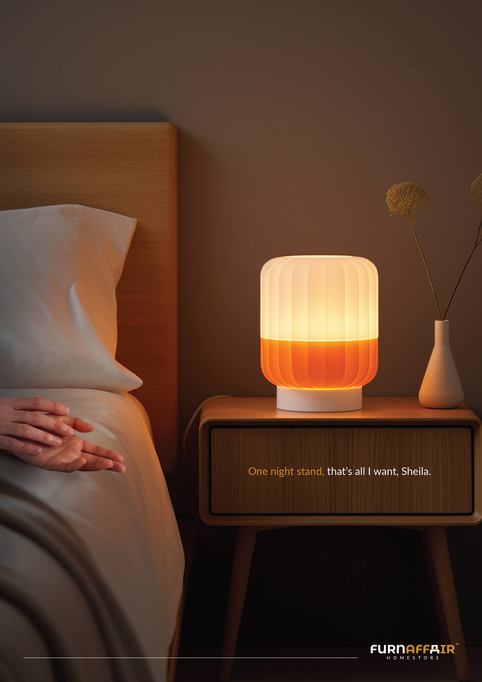 We partnered with Furnaffair Homestore to disrupt the cluttered furniture and home decor category. In an industry obsessed with aesthetics and durability, we flipped the tale, infusing humor, relatability, and cultural wit to incite brand awareness. Drawing inspiration from pop culture’s most loaded phrase, “one night stand,” we gave it a clever twist that was both cheeky and product-relevant, instantly sparking intrigue.