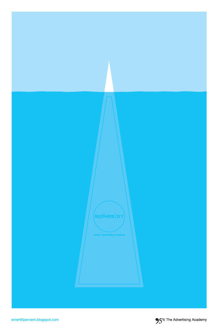 This professional campaign titled 'One Show, Spikes, D&AD' was published in Malaysia in October, 2006. It was created for the brand: 95 Percent The Advertising Academy, by ad agency: Dentsu. This Print medium campaign is related to the Education industry and contains 3 media assets. It was submitted over 18 years ago.