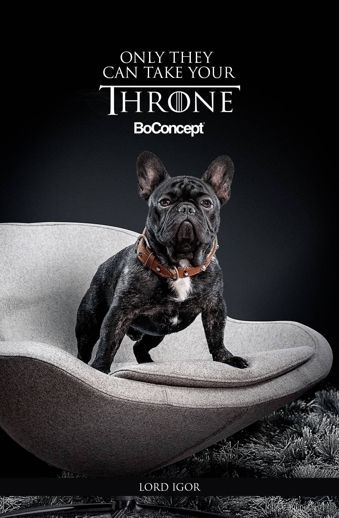 During the week leading up to the grand finale of one of television's biggest hits, Game of Thrones, millions of people were wondering who would end up sitting on the Iron Throne. Taking up a strong insight, Danish furniture brand BoConcept released a series of ads that reminded viewers there's a throne at home they've already lost to those with the fiercest claim. Every dog owner knows that, no matter who pays the bills or sets the rules of the house, once their pets decide on their favourite sitting spot, no one will be able to get them out. Might as well go get a new chair to watch the final episode from.