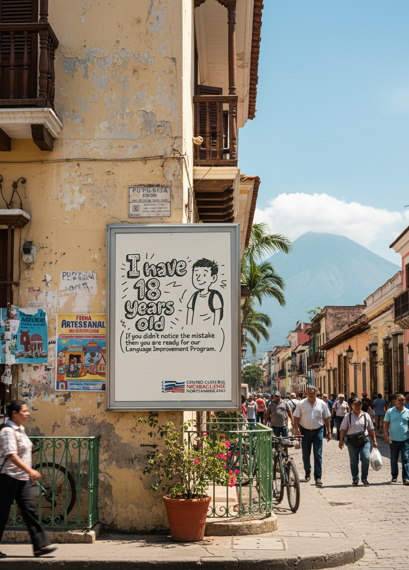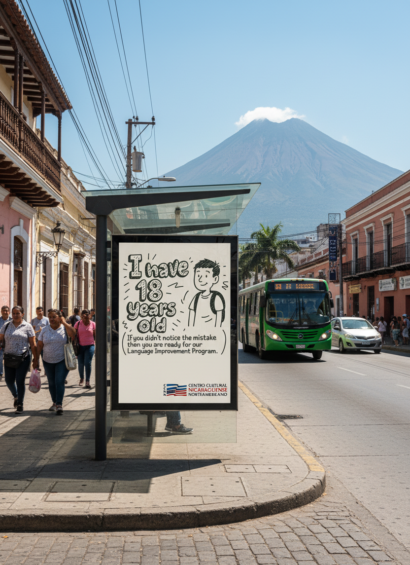 This campaign transforms the most common English mistakes made by Spanish speakers into a fun, eye-catching challenge. Viewers are invited to spot the error; if they miss it, that quiet “oops moment” signals they’re the perfect fit for the Centro Cultural Nicaragüense Norteamericano’s Language Improvement Program. It’s a clever way to spark curiosity and inspire people to sharpen their English.