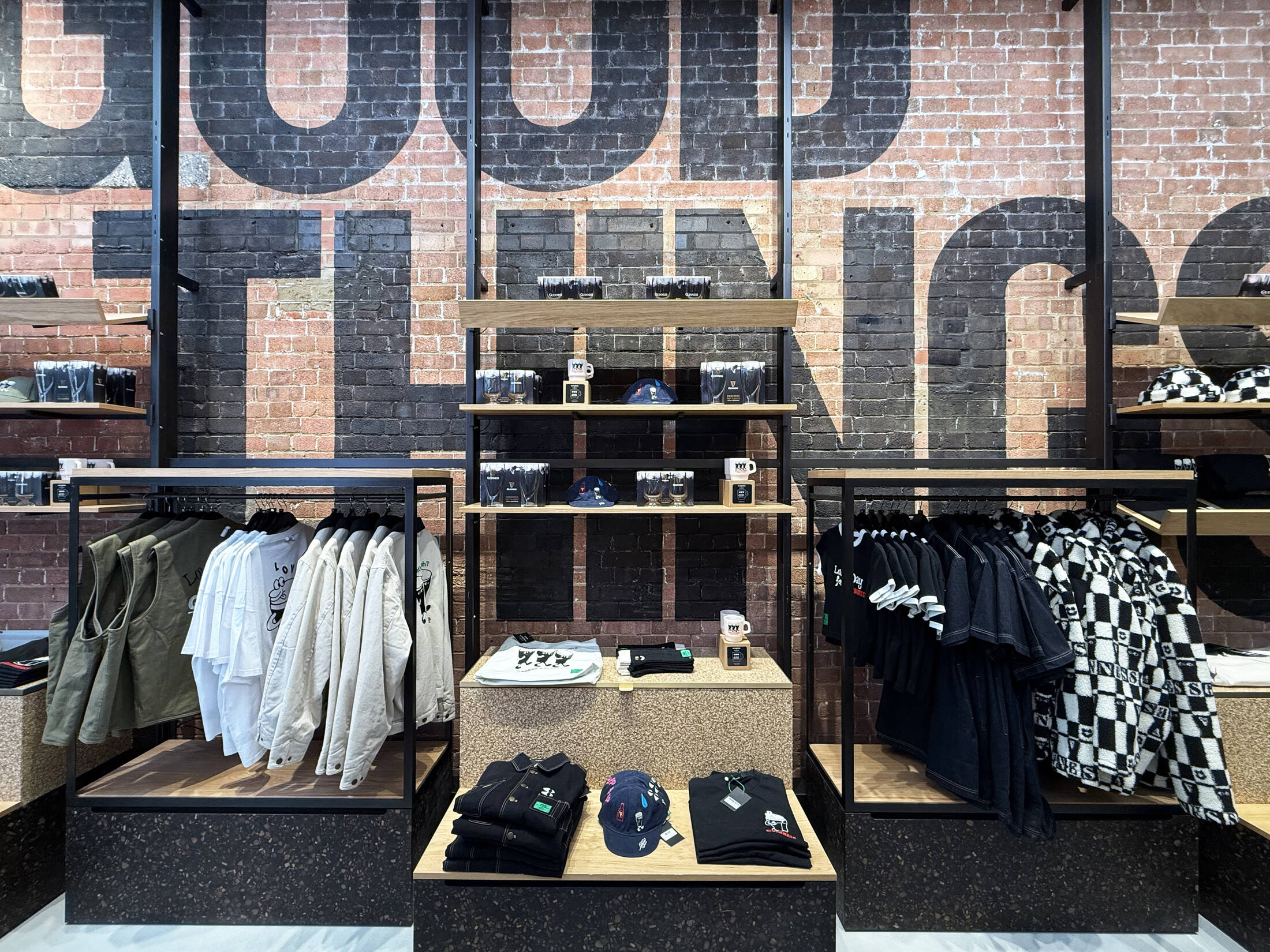 The Guinness Good Things store, a pop-up space in the Guinness Open Gate Brewery London, is a creative, dynamic store that aims to mix the Guinness magic with new ideas and purposeful collaboration. The space is designed to house a series of collaborations between Guinness and artists, designers, makers and brands such as Lazy Oaf. The collaborations are short-term installations spotlighting a selection of goods re-interpreting and celebrating Guinness in new ways.