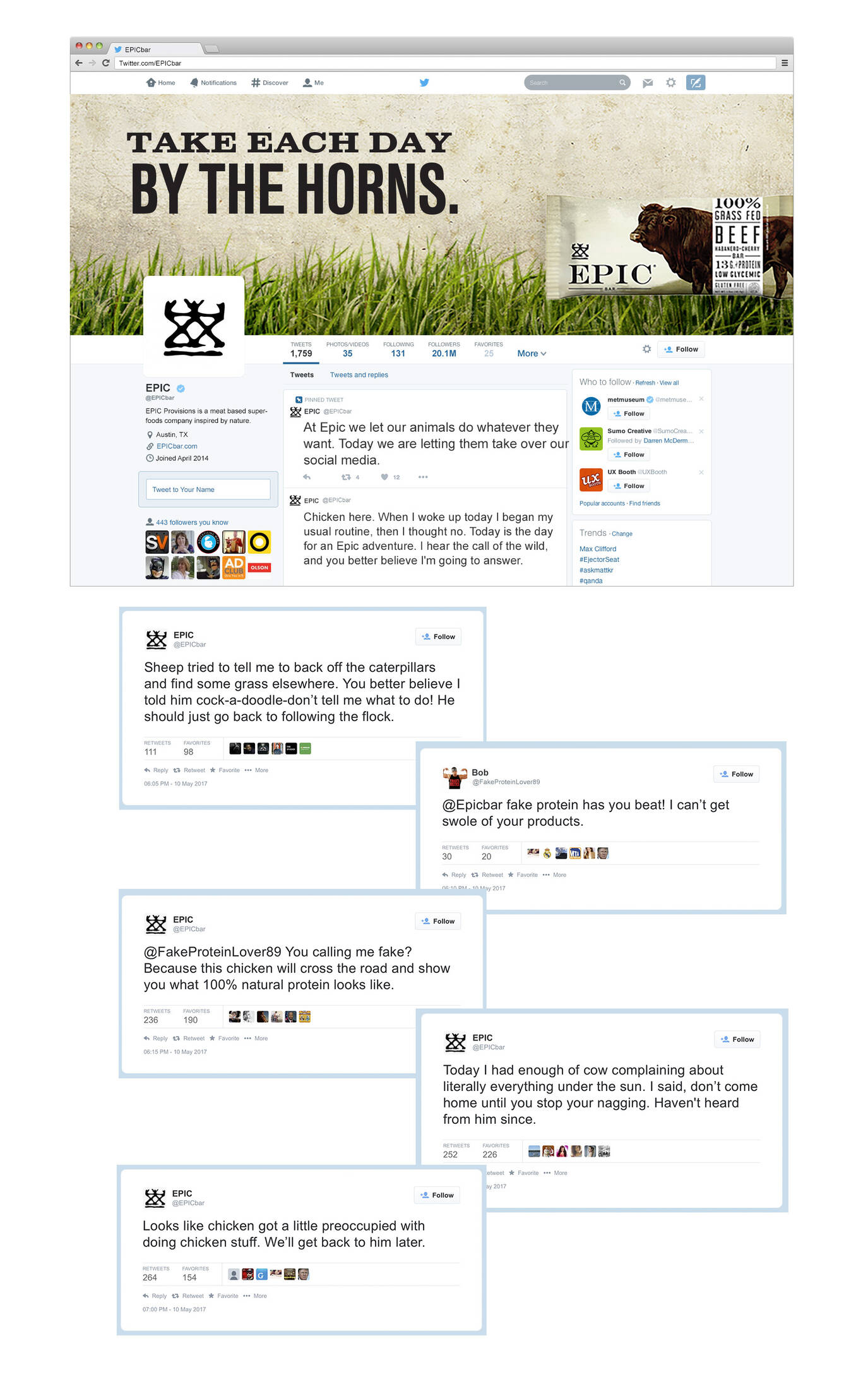 This student campaign titled 'Organic Meat Snacks' was published on January 01, 2018. It was created for the brand: EPIC, by ad school: Southern Methodist University. This OOH Outdoor medium campaign is related to the Food industry and contains 4 media assets. It was submitted almost 2 years ago by Senior Lecturer & Creative Program Director: Mark Allen of Southern Methodist University.