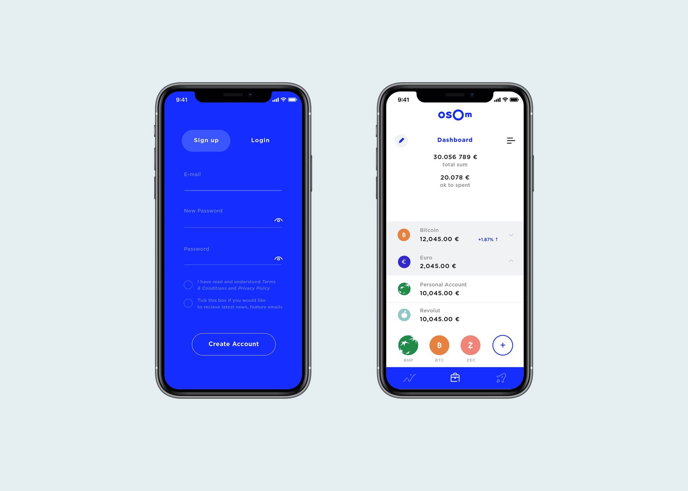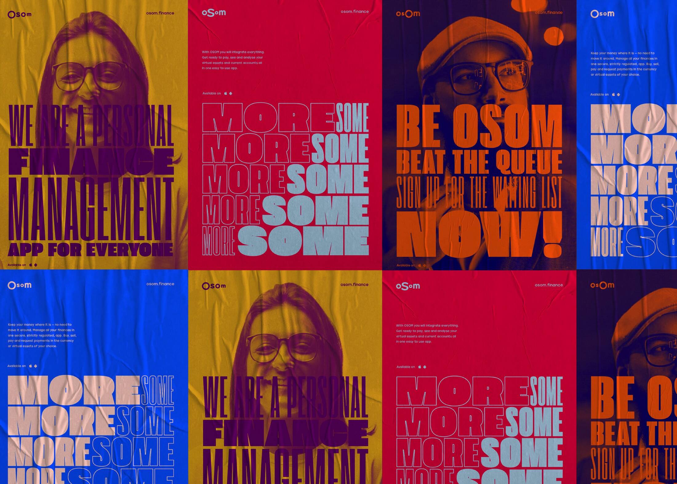 Digital service OSOM finance offers a revolutionary approach to finance management. The app currently allows converting euros to crypto currency, managing bitcoin and ethereum wallets. Voskhod has created the dynamic identity and mobile app design for OSOM finance. The idea of constant ongoing transformation lies at the core of the brand style, symbolizing ease of finance management and currency transformation. There are no common colors, fonts or sizes in the corporate identity. There is an infinite number of varied solutions that fit into a single graphic identity system. It became possible thanks to implementation in typography the technique of morphing which is common for computer animation. This technique allows to smoothly transform font variations and its color pallet as well.