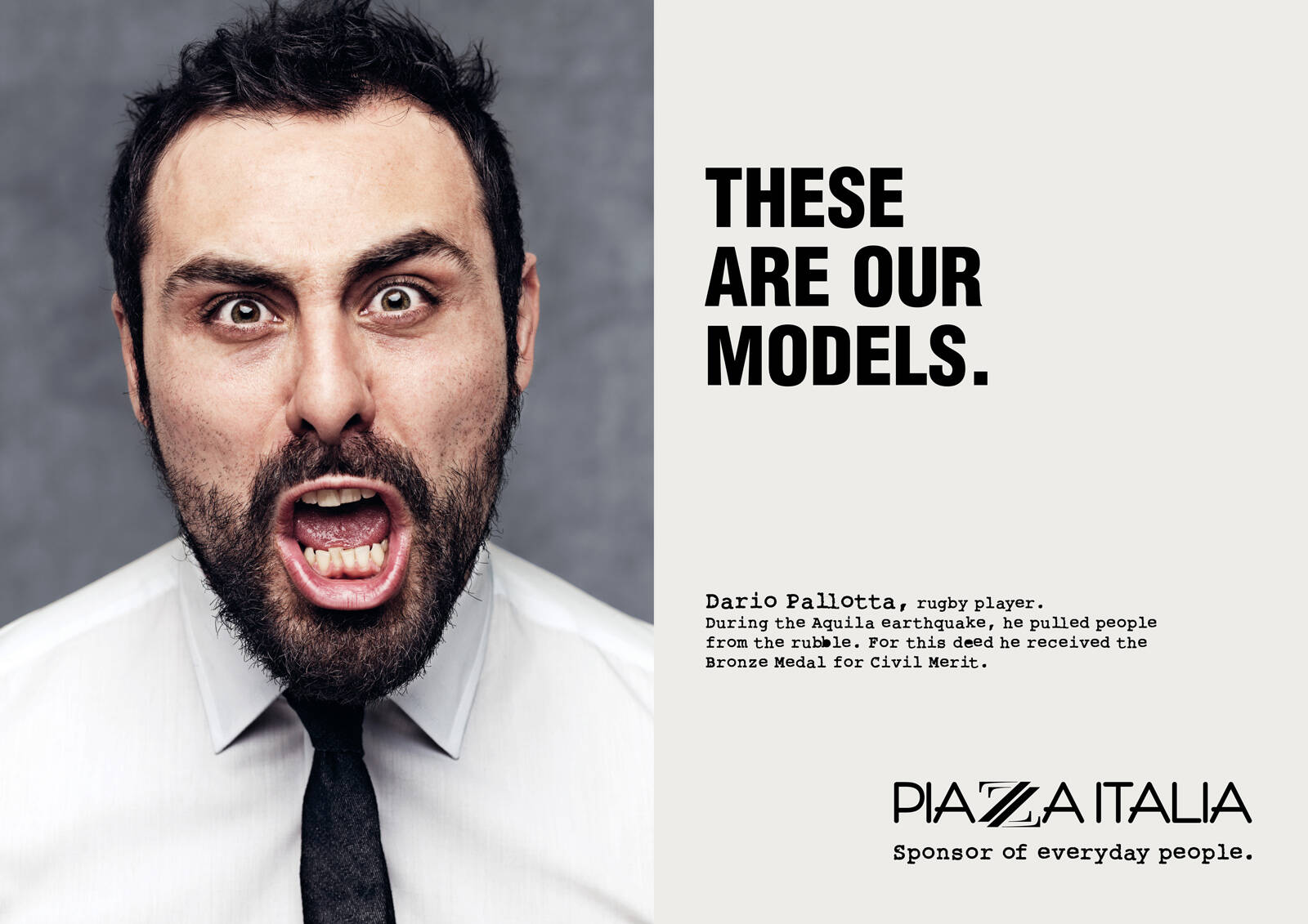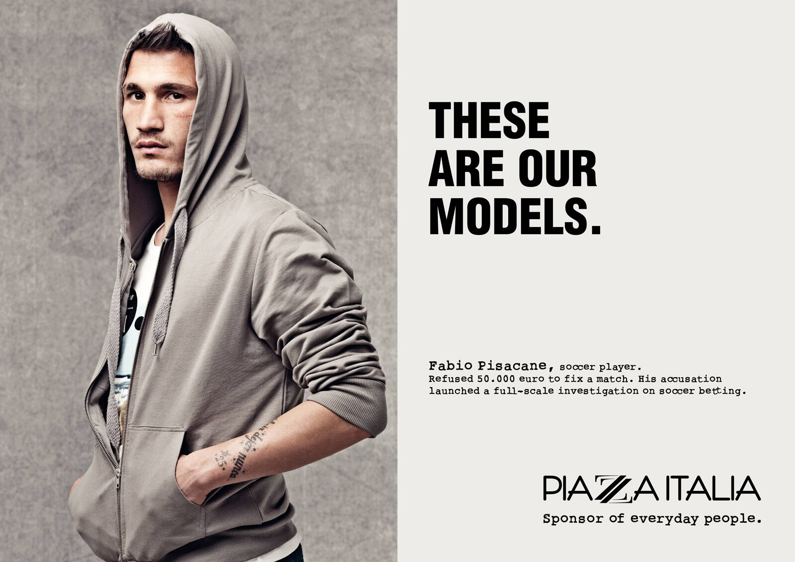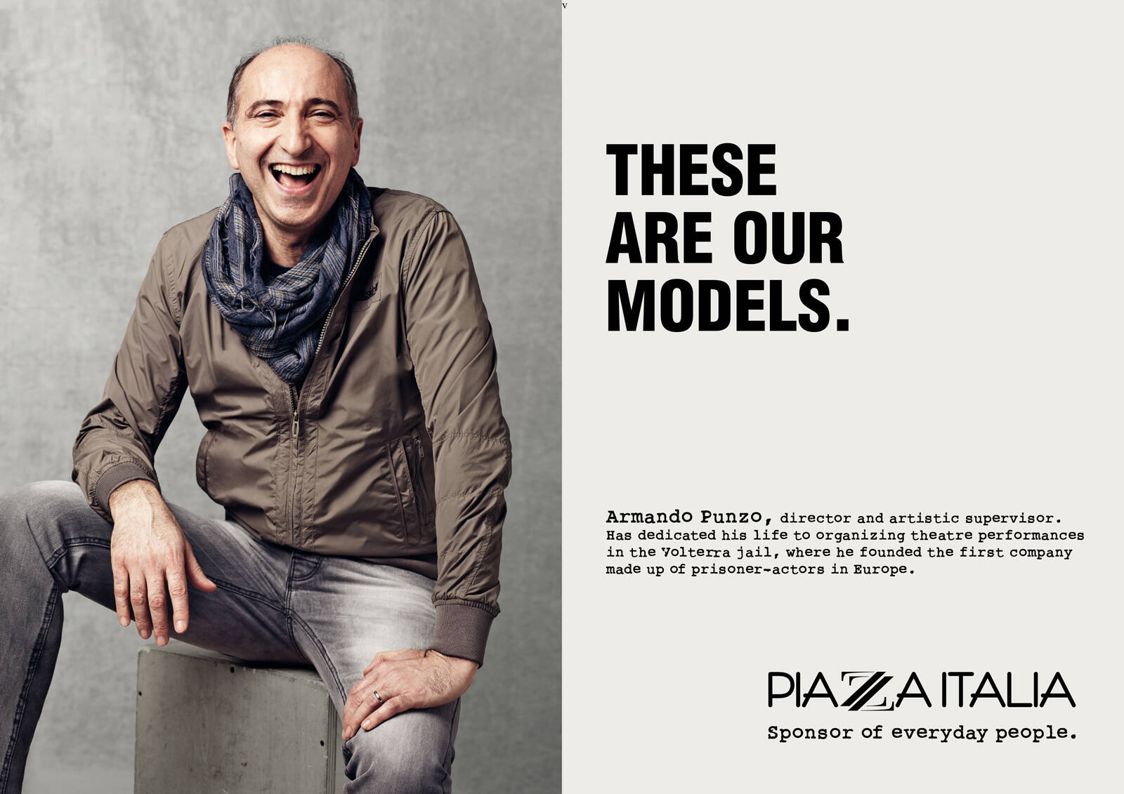 Piazza Italia is an Italian fast-fashion brand. For this campaign we decided to use, instead of traditional models or testimonials, common people that, for their deeds, can be considered as role models, and express values in which the brand likes to reflect in.
