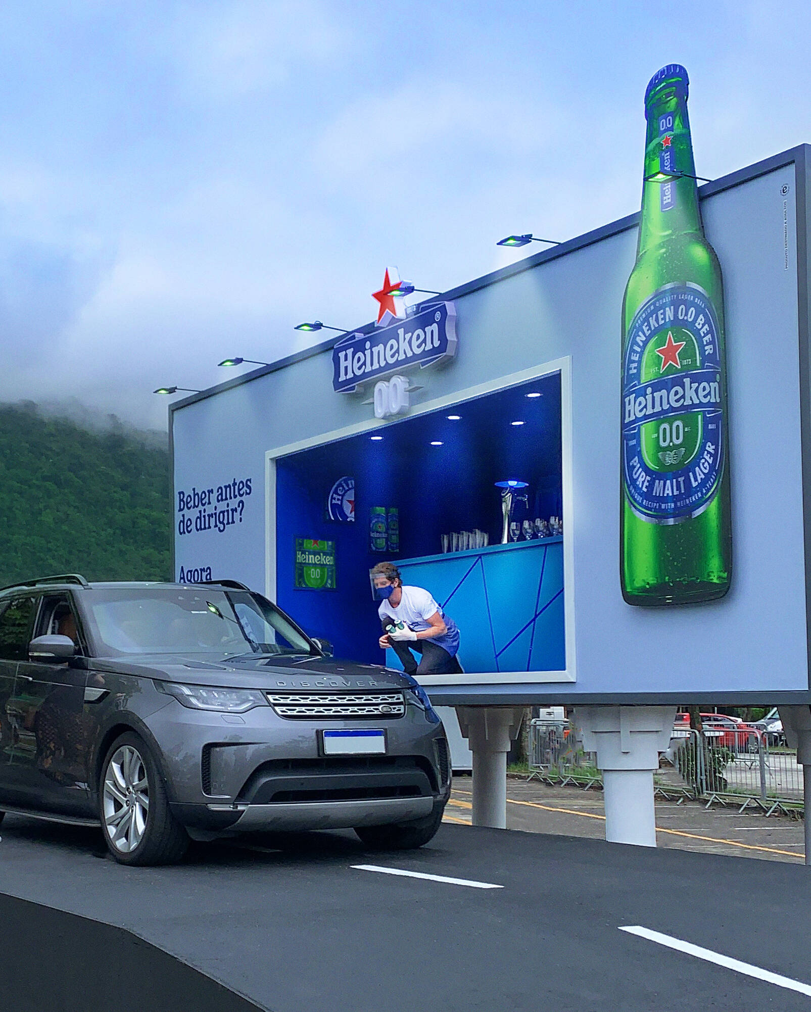 Driving through the streets and being impacted by images from a billboard is common. But for drivers who are close to the Rodrigo de Freitas Lagoon, in Rio de Janeiro, Brazil, this experience was quite different in the beginning of this month (Dec. 10th-13th ). That's because the zero-alcohol version of Brazil's best-selling premium beer Heineken 0.0 featured the “Outdoor Bar”: an unprecedented bar-shaped billboard. The activation explored new moments of consumption of Heineken 0.0, reinforcing the message that now the consumer can drink a beer with quality flavor and zero alcohol at any time of the day, even before driving.