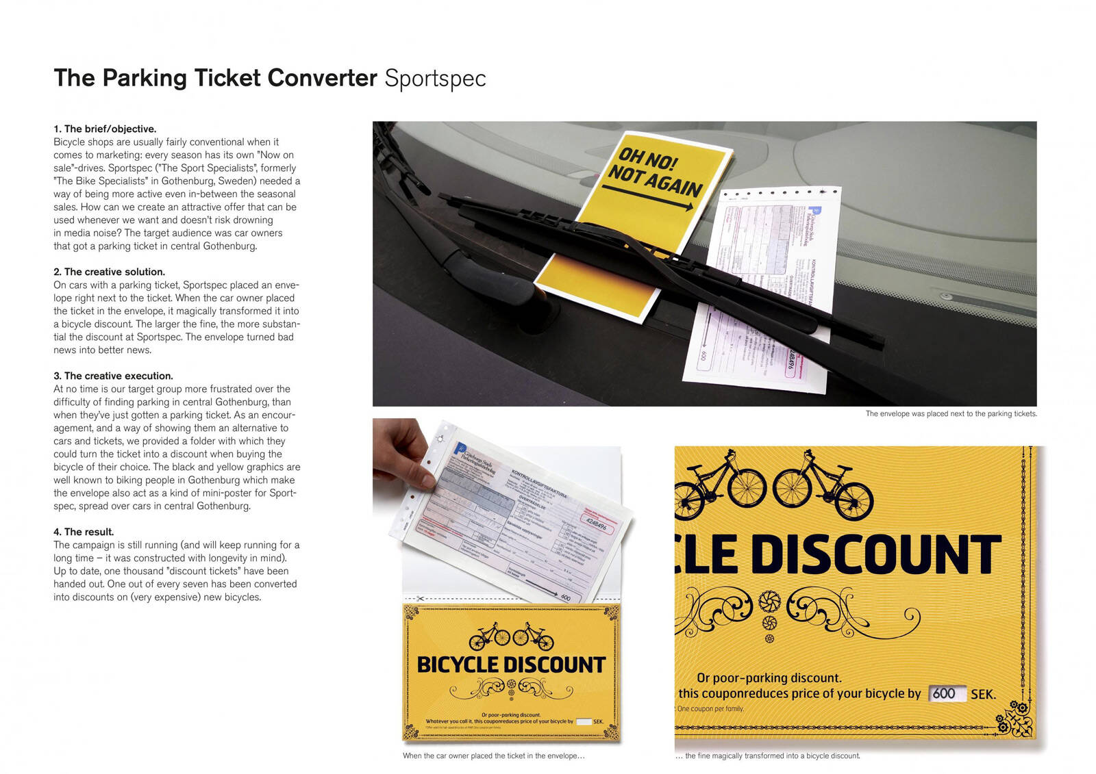This professional campaign titled 'Parking ticket' was published in Sweden in June, 2009. It was created for the brand: Sportspec, by ad agency: Goss. This Static Images medium campaign is related to the Retail Services industry and contains 1 media asset. It was submitted over 16 years ago.