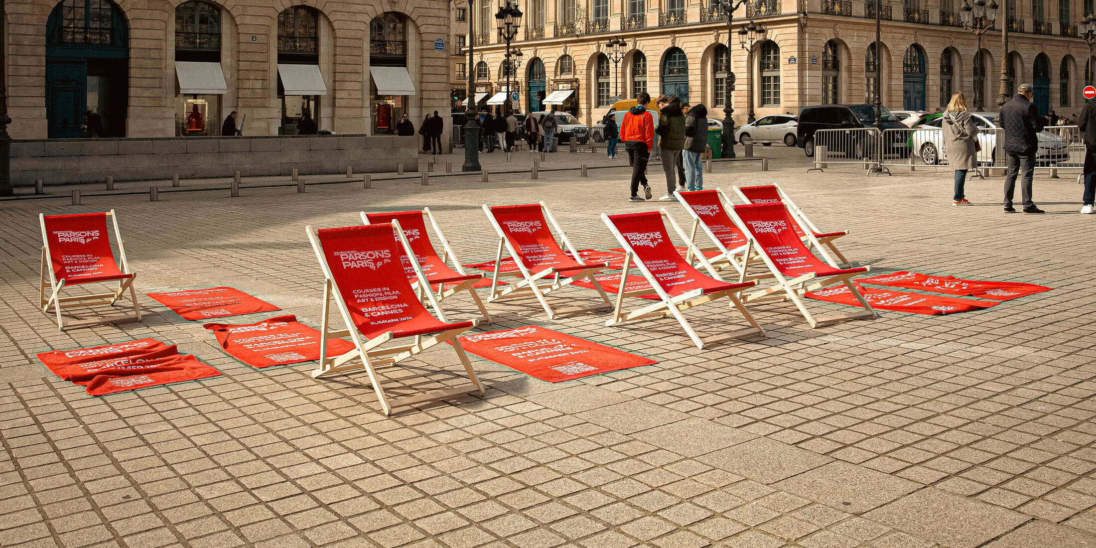 An ambient campaign for The New School Parsons Paris, to announce the launch of "Parsons Paris By the Sea” summer programs in Barcelona & Cannes.