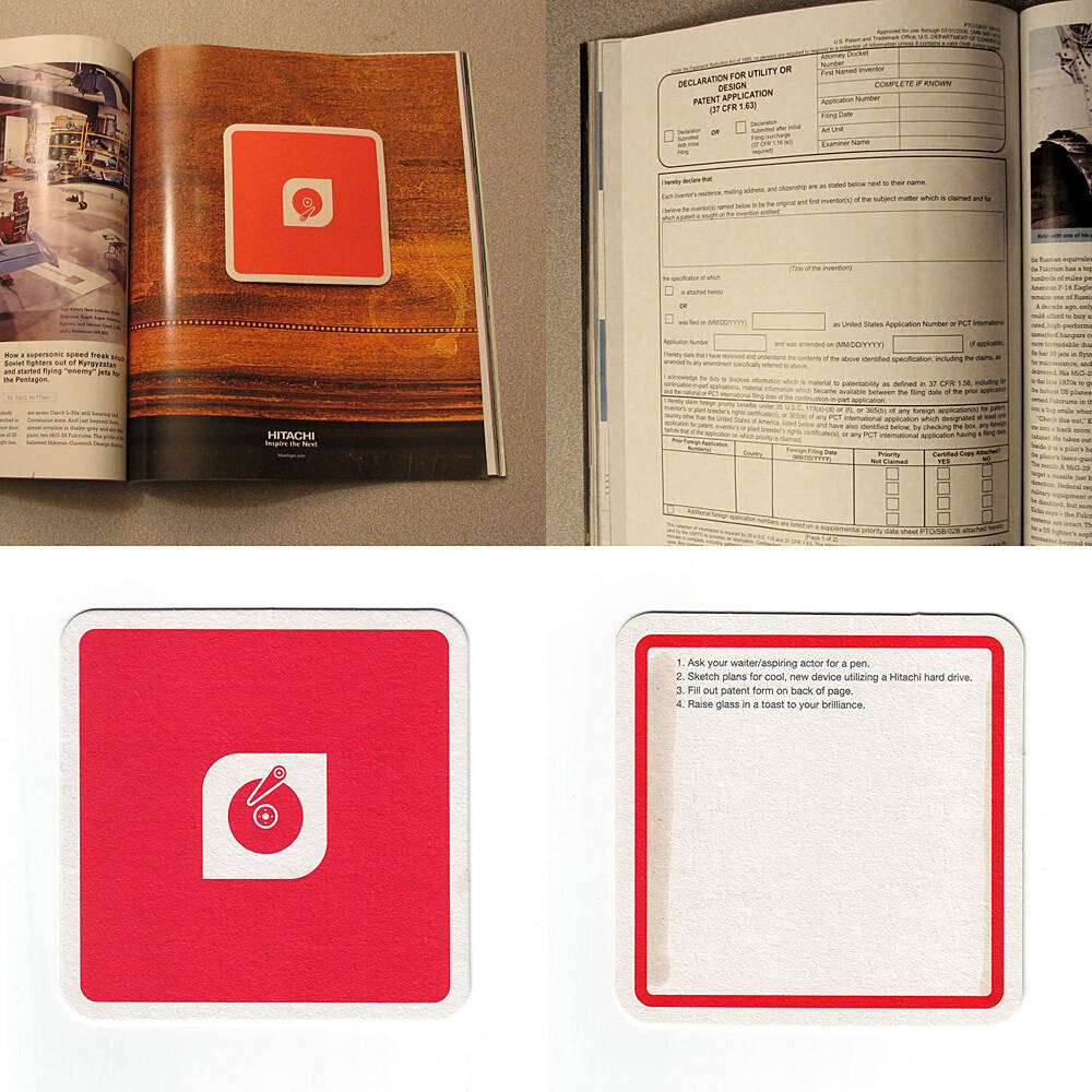 This professional campaign titled 'Patent' was published on October 01, 2005. It was created for the brand: Hitachi, . This Ambient medium campaign is related to the Electronics, Technology industry and contains 1 media asset. It was submitted about 20 years ago.
