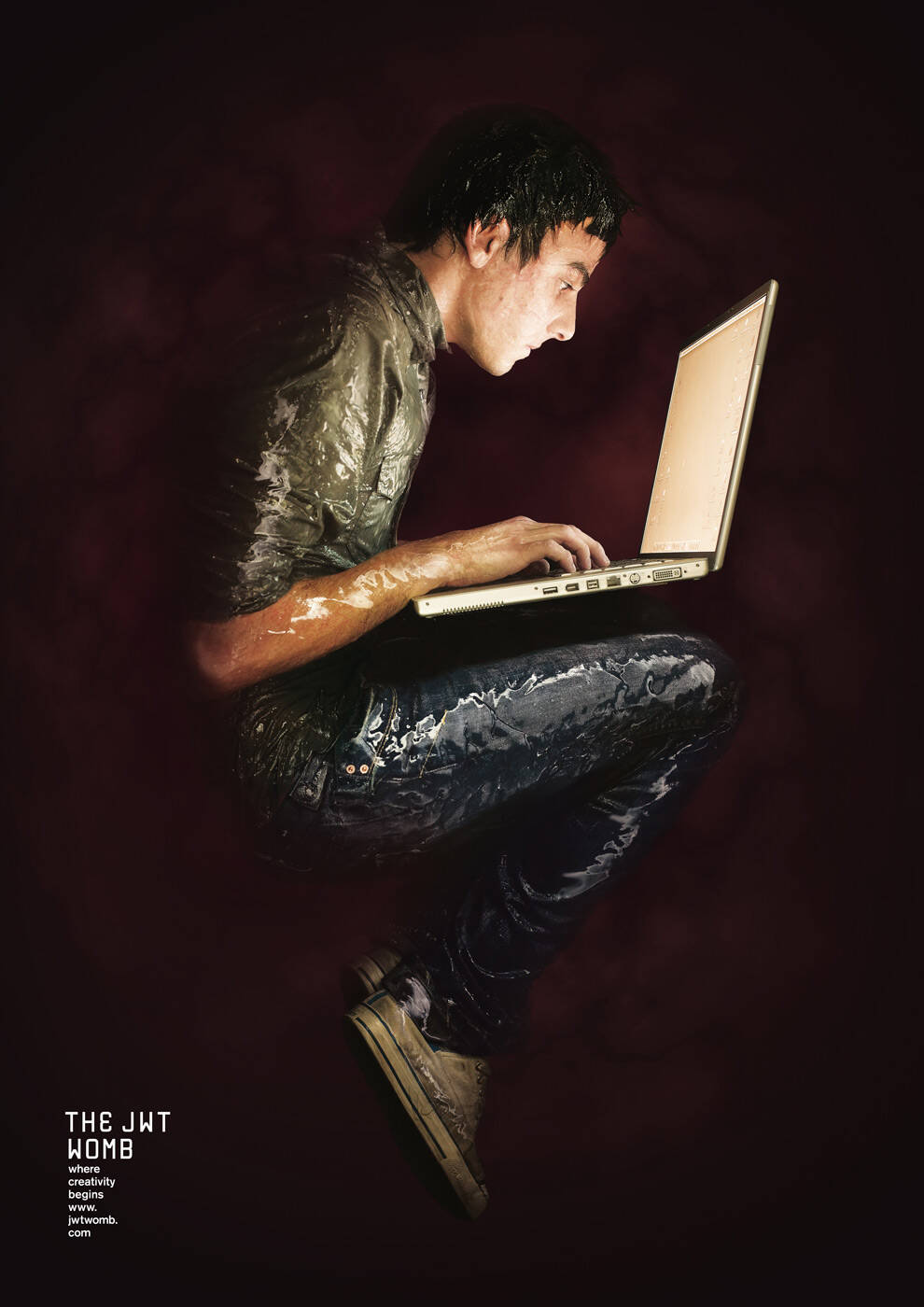 Posters posted in college to promote new student internship within an advertising agency. An image of students in a womb was used to illustrate the development and nurturing of creative talent.