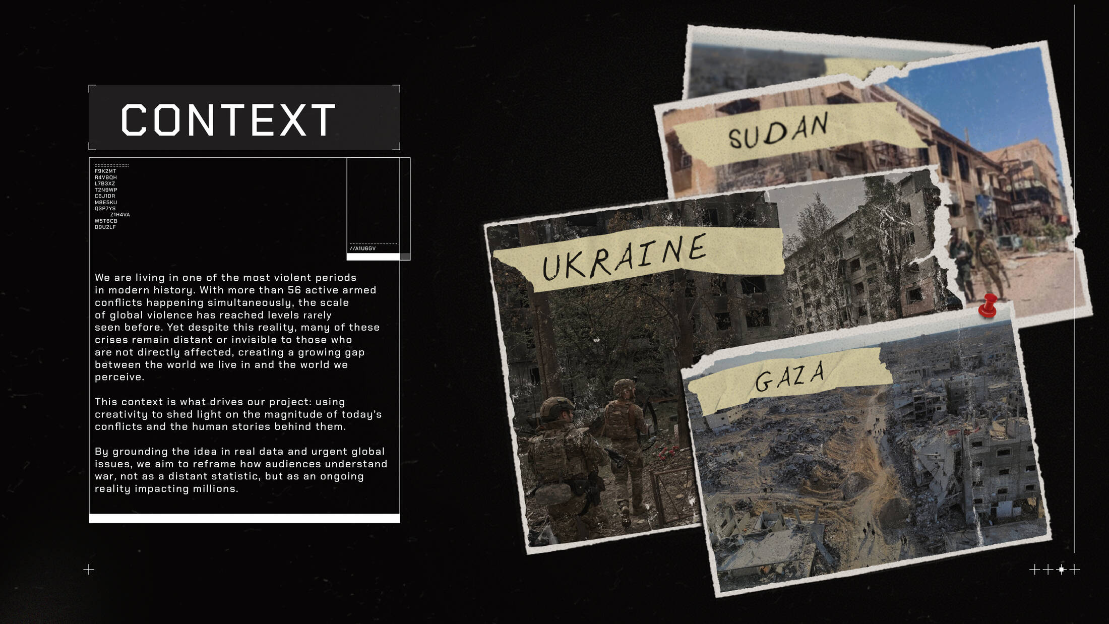 The project challenges the way we consume conflict as entertainment and proposes a new objective: protecting lives.