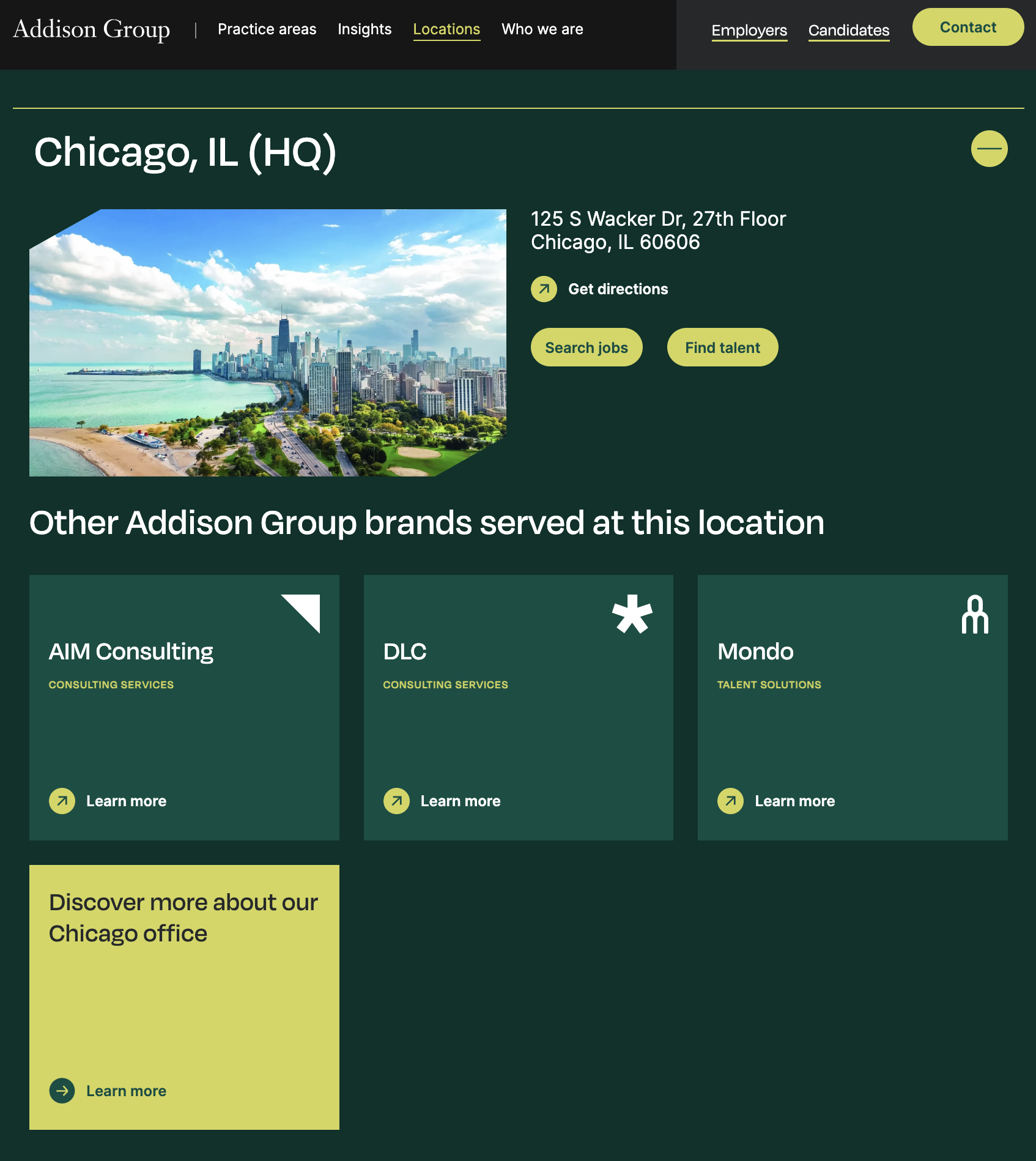 With eight brands across talent solutions and consulting services, along with 28 offices across the U.S., the brand refresh and website redesign are the latest steps the company has taken to show clients and candidates exactly why no one gets talent like Addison Group.