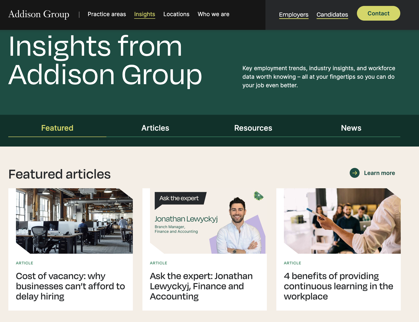 VSA then teamed up with Dapper and Associates to execute front- and back-end development that created a brand and user experience centered on what makes Addison Group so special: its people.