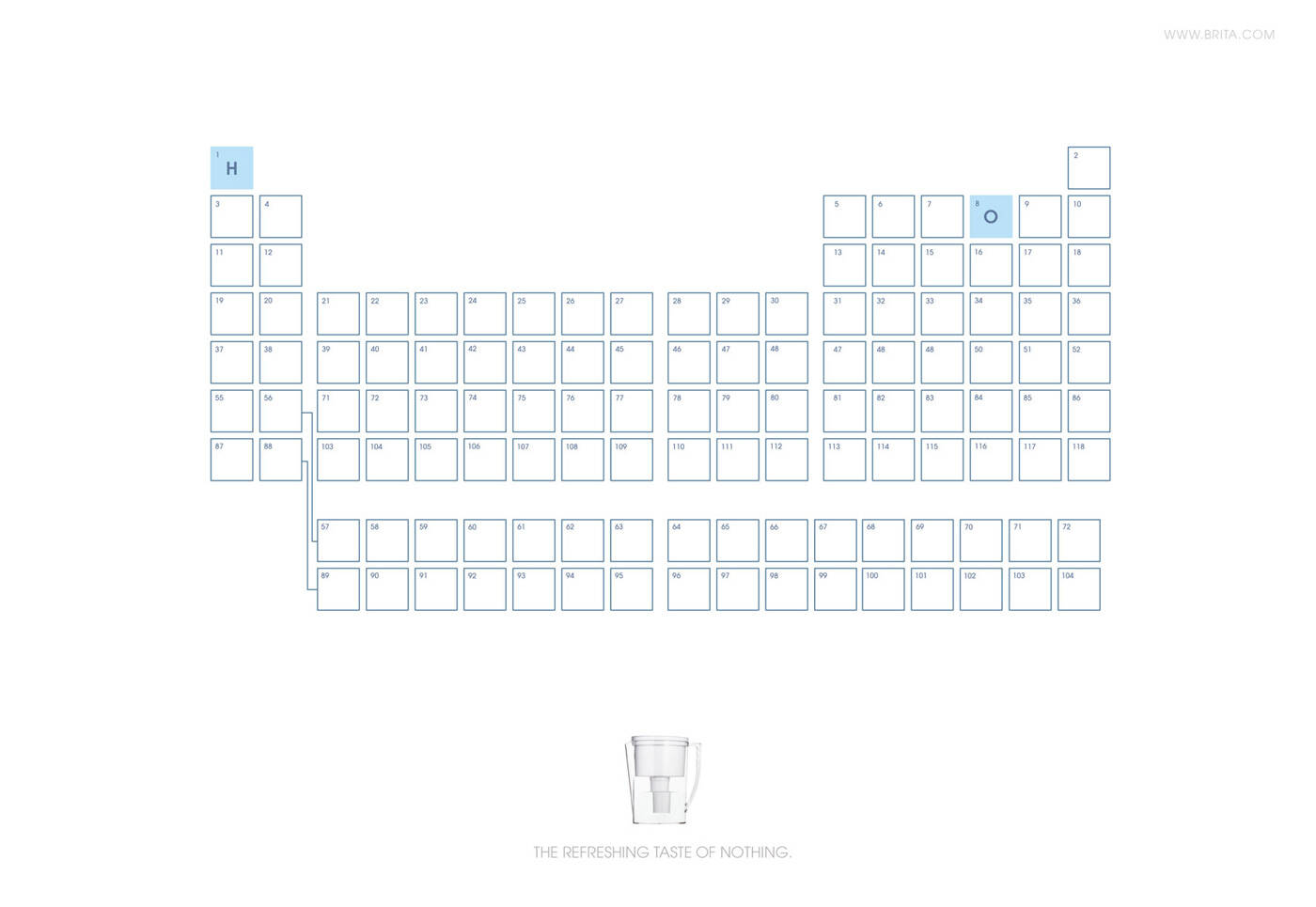 This professional campaign titled 'Periodic table, Map' was published in United States in February, 2009. It was created for the brand: Brita, by ad agency: The Creative Circus. This Print medium campaign is related to the House, Garden industry and contains 2 media assets. It was submitted almost 17 years ago.