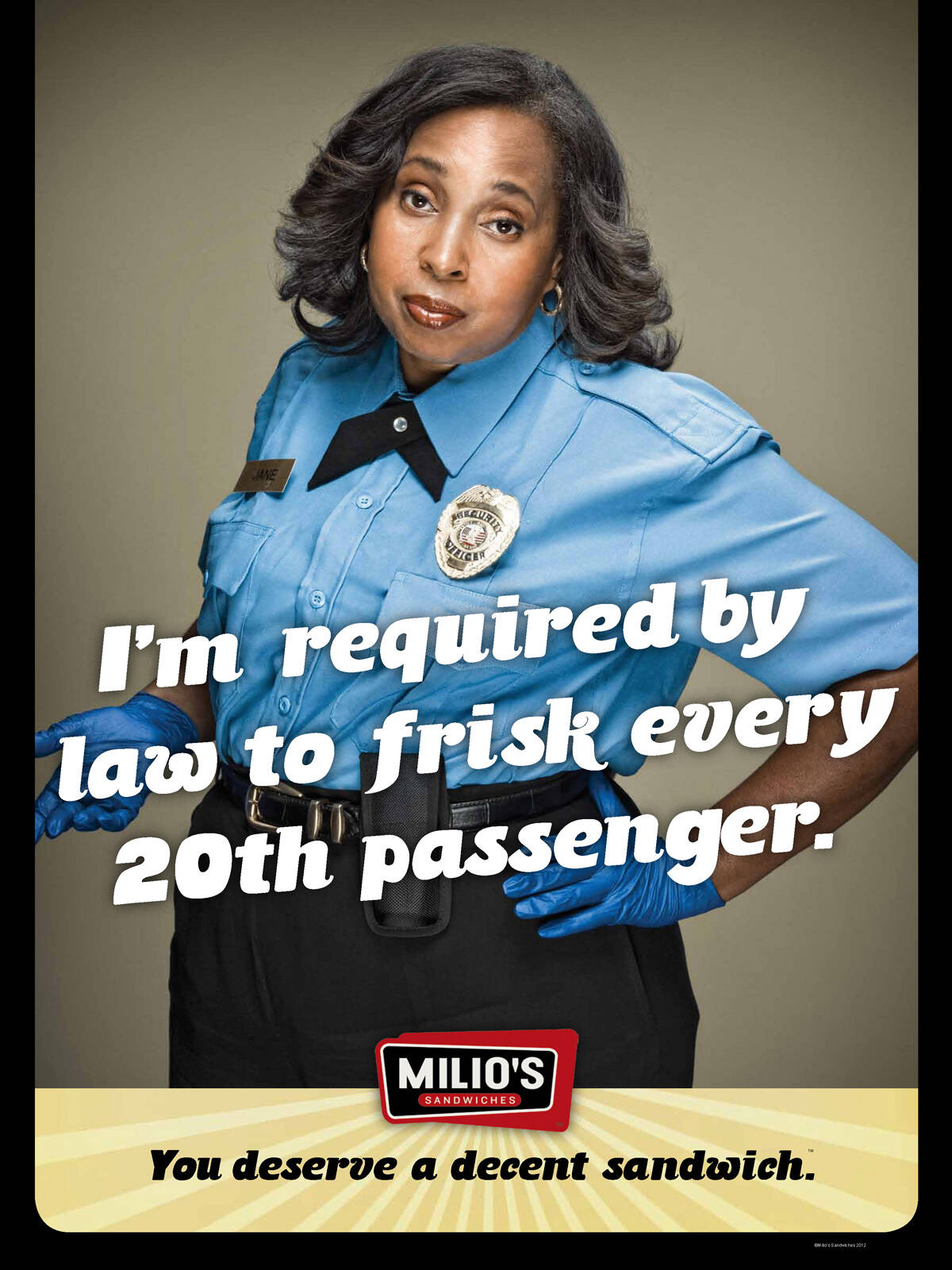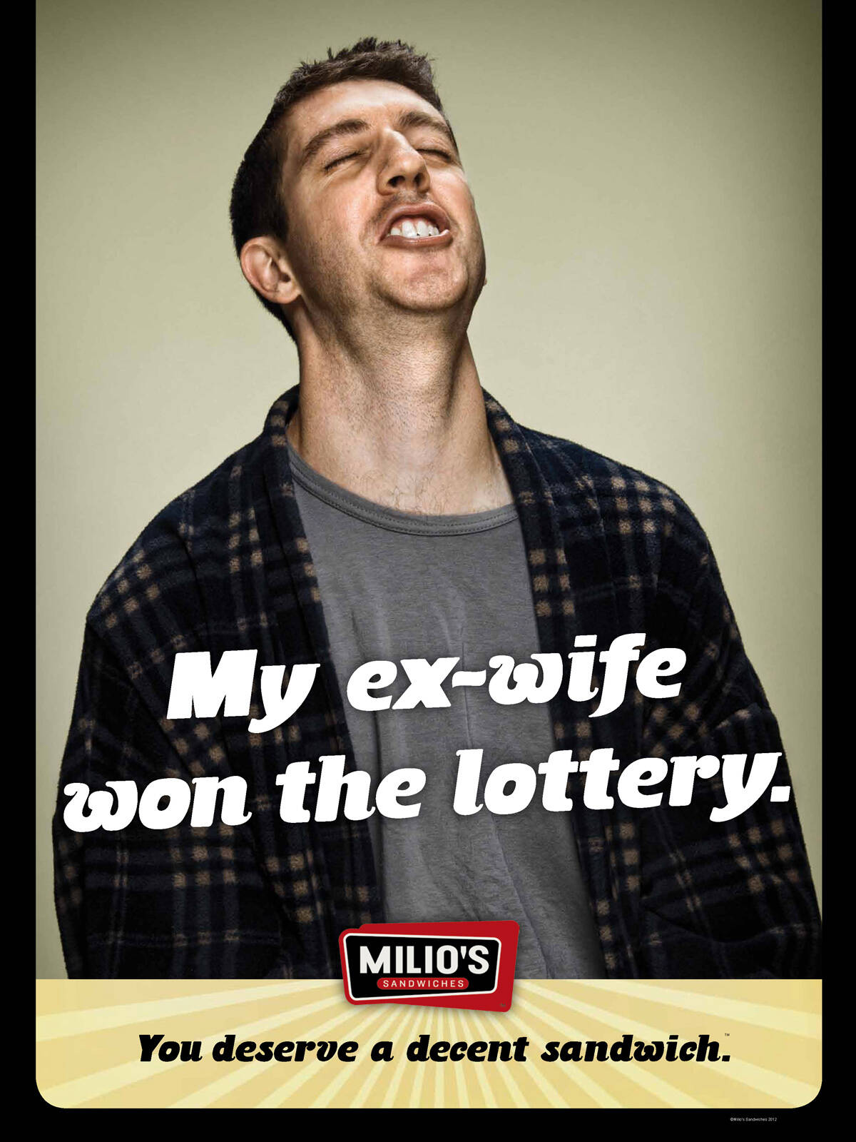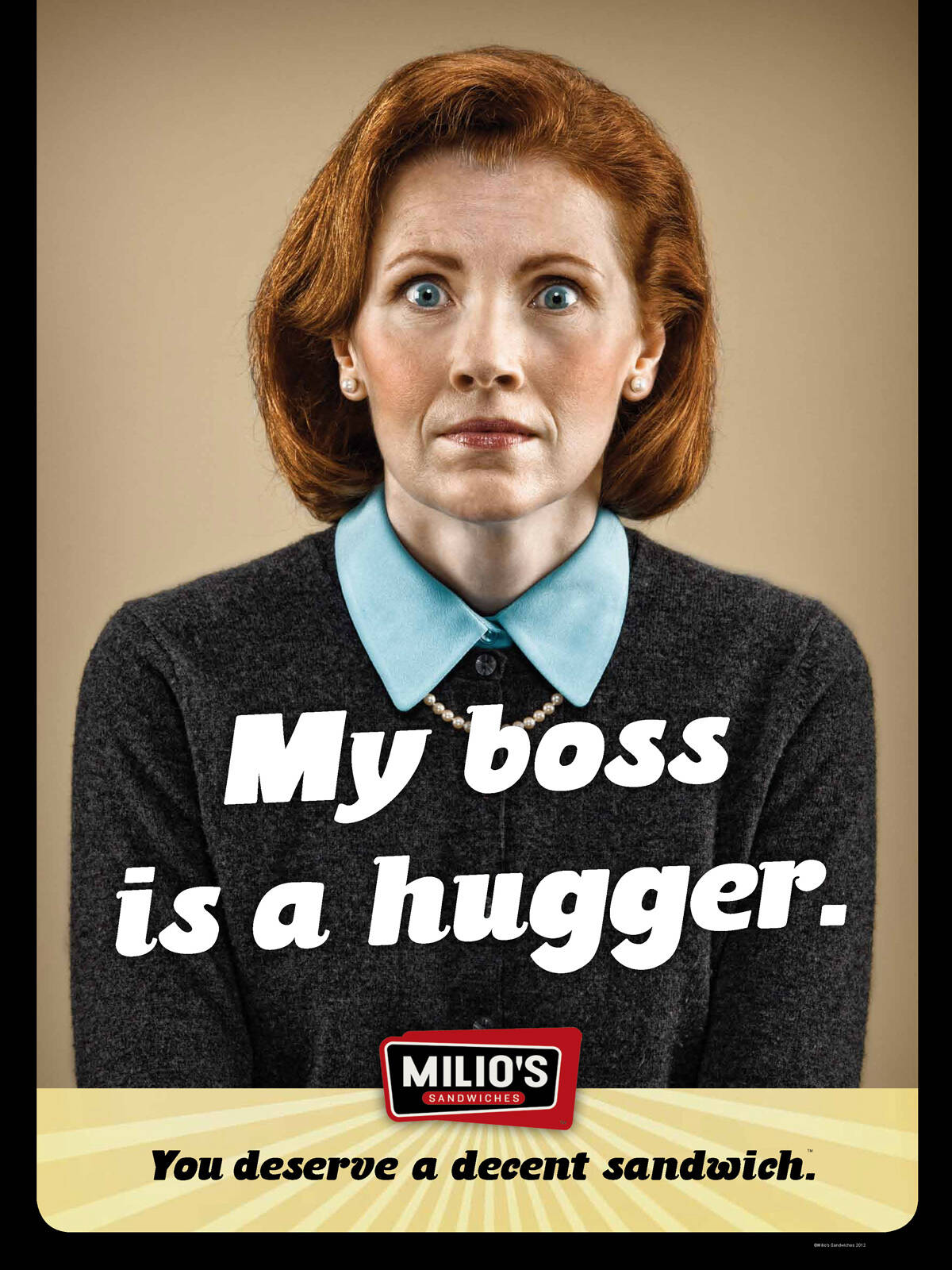 This professional campaign titled 'Phd, Likes me, Hugger, Frisk, Ex-wife, Astronaut, Algebra' was published in United States in September, 2012. It was created for the brand: Milio's Sandwiches, by ad agency: Lindsay Stone & Briggs. This Print medium campaign is related to the Food industry and contains 7 media assets. It was submitted about 13 years ago.