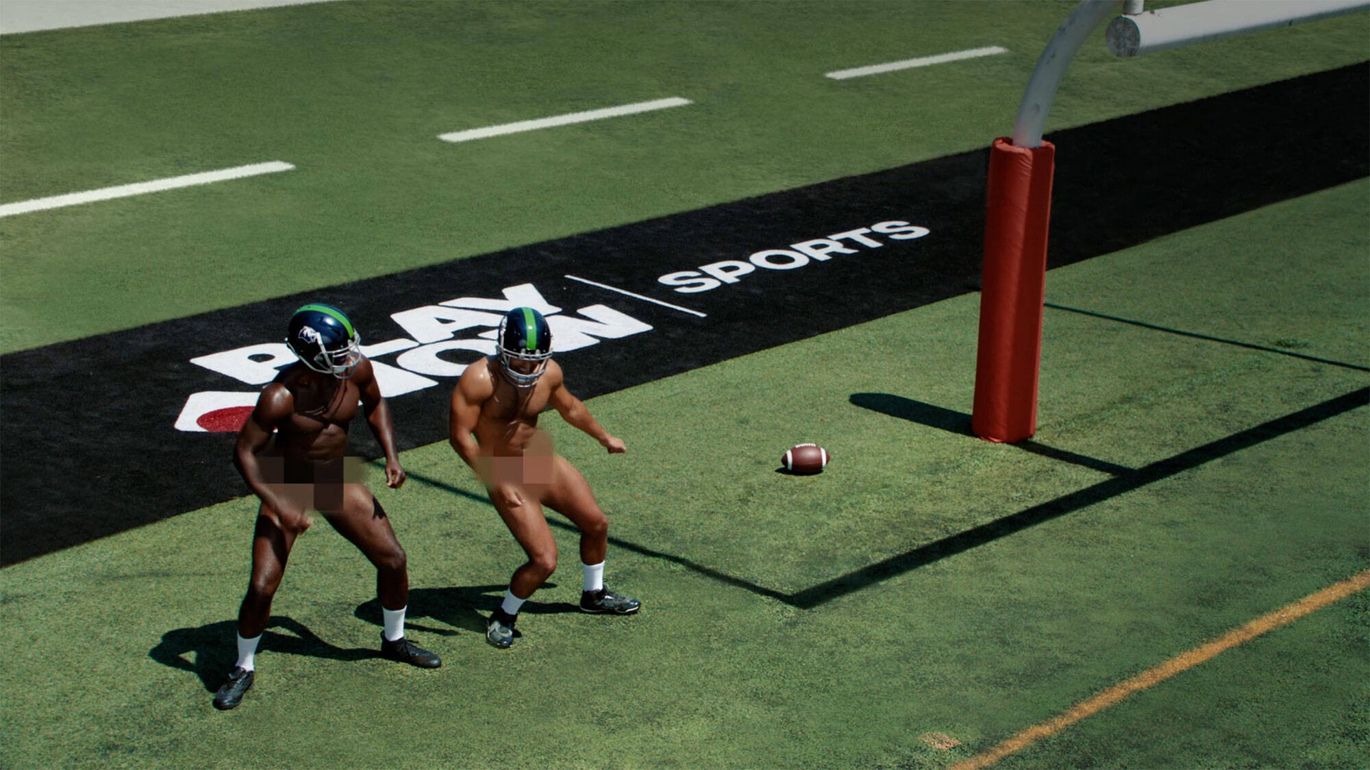 The “Picture Them Naked” spot shows football, hockey, and soccer through the eyes of potential sports bettors, doing just as the saying suggests: picturing everyone naked. The tone is light-hearted rather than the swagger that tends to define the category.