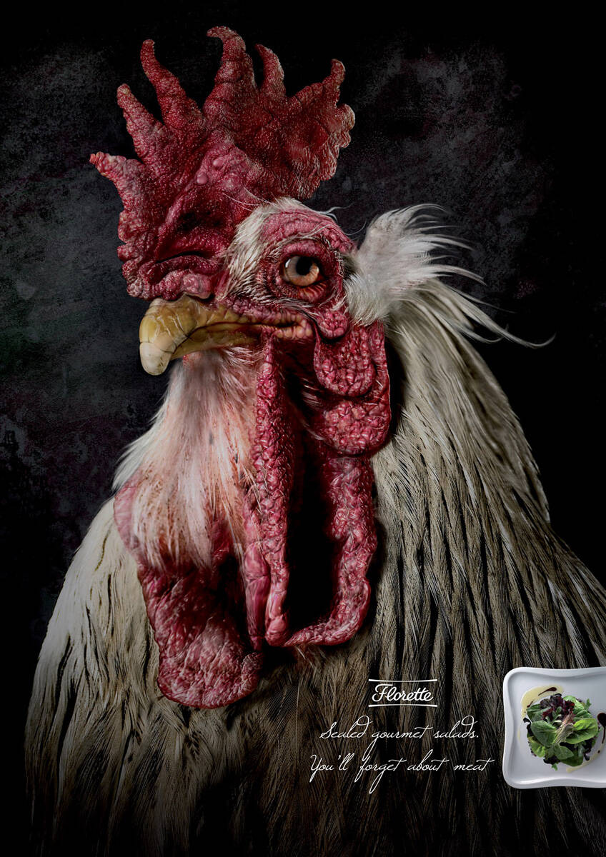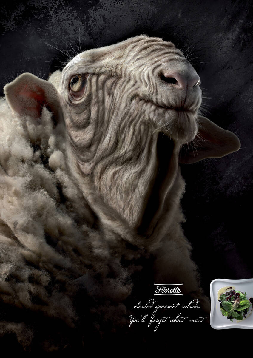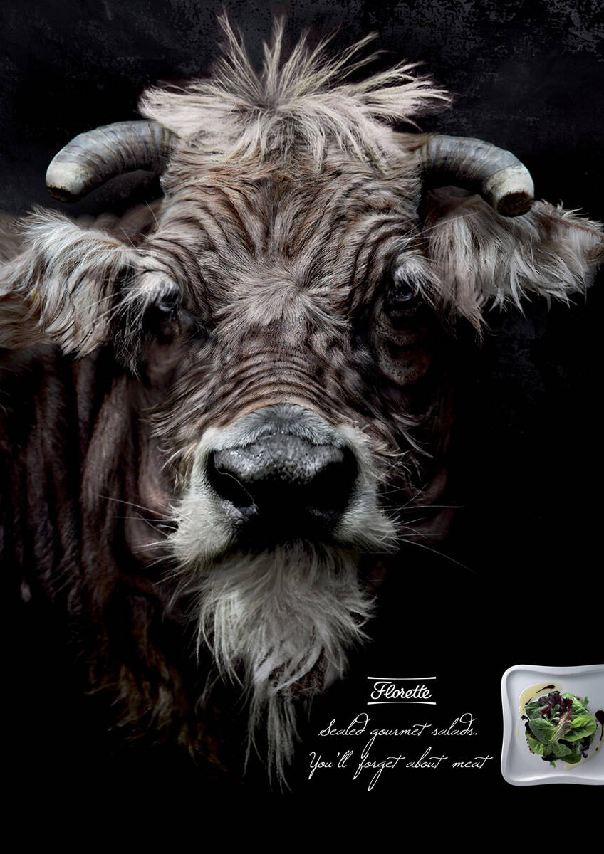 This professional campaign titled 'Pig, Sheep, Rooster, Bull' was published in Spain in May, 2008. It was created for the brand: Florette, by ad agency: Grey. This Print medium campaign is related to the Food industry and contains 4 media assets. It was submitted over 17 years ago.