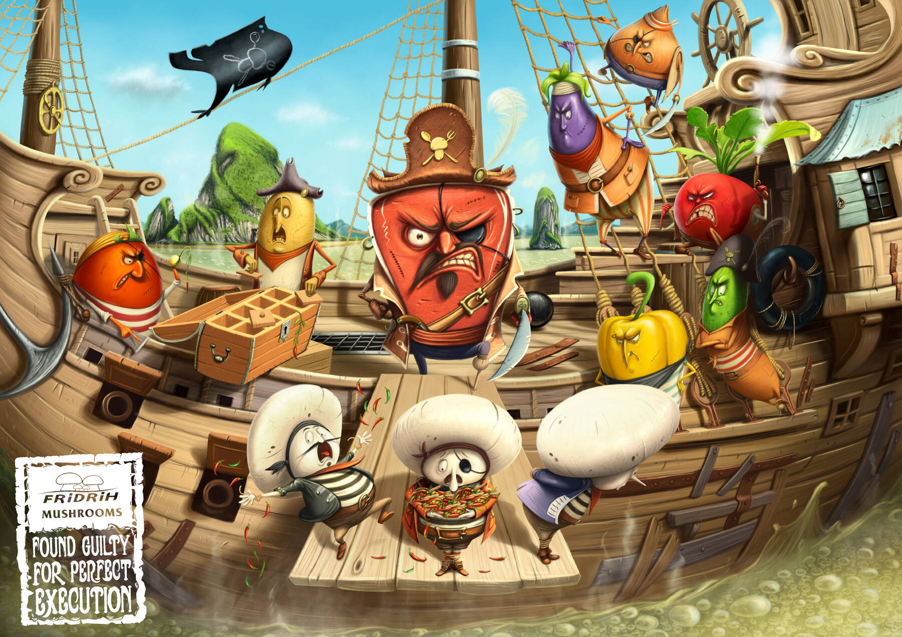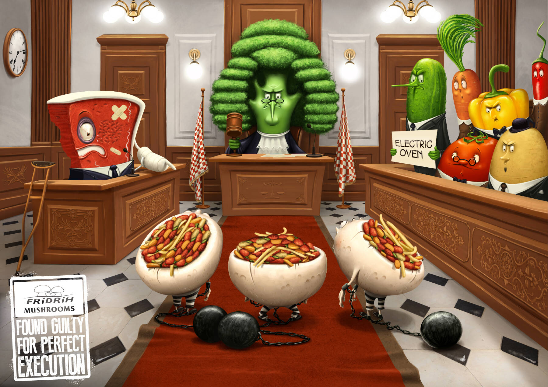 This professional campaign titled 'Pirates, Tribe, Courtroom' was published in Croatia in September, 2013. It was created for the brand: Fridrih Mushrooms, by ad agency: Imago. This Print medium campaign is related to the Food industry and contains 3 media assets. It was submitted about 12 years ago.