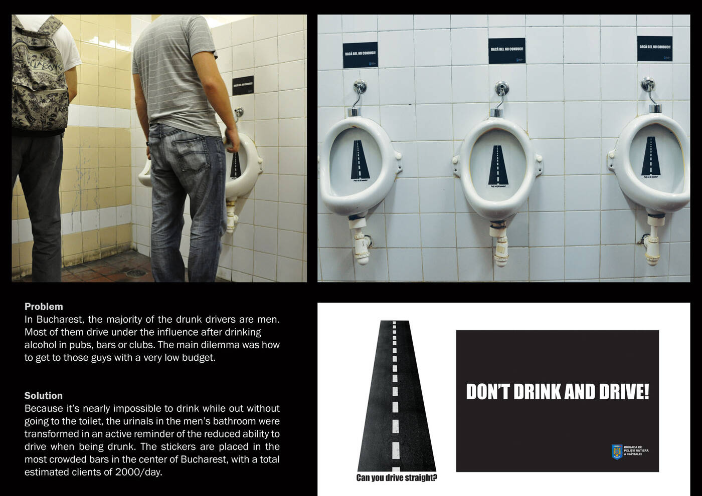 This professional campaign titled 'Pissing test' was published in Romania in August, 2009. It was created for the brand: Romanian Traffic Police, by ad agency: Mercury 360. This Ambient medium campaign is related to the Public Interest industry and contains 1 media asset. It was submitted about 16 years ago.