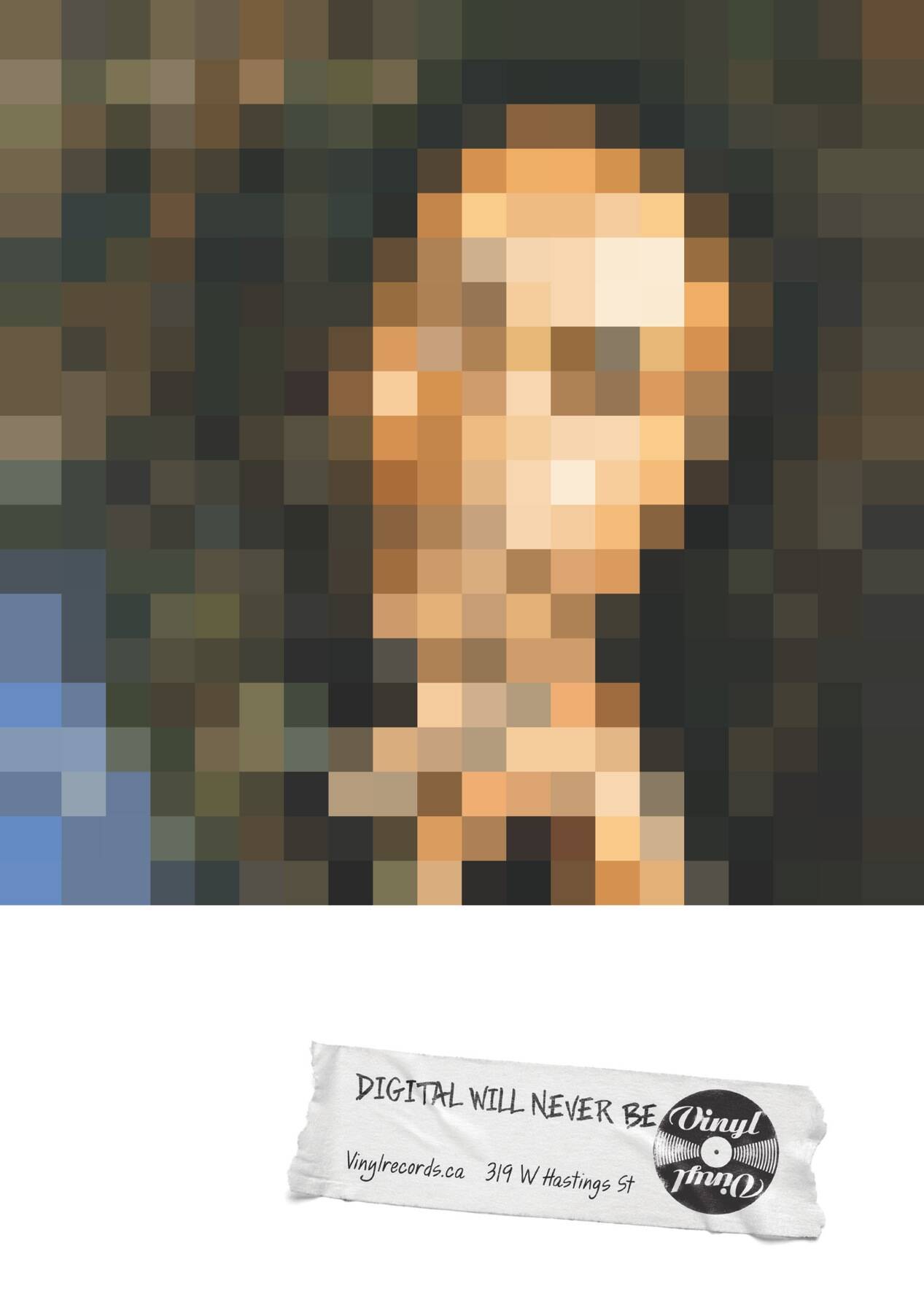 This professional campaign titled 'Pixels' was published in Canada in August, 2013. It was created for the brand: Vinyl Records, by ad agency: Spring. This Print medium campaign is related to the Media industry and contains 4 media assets. It was submitted about 12 years ago.