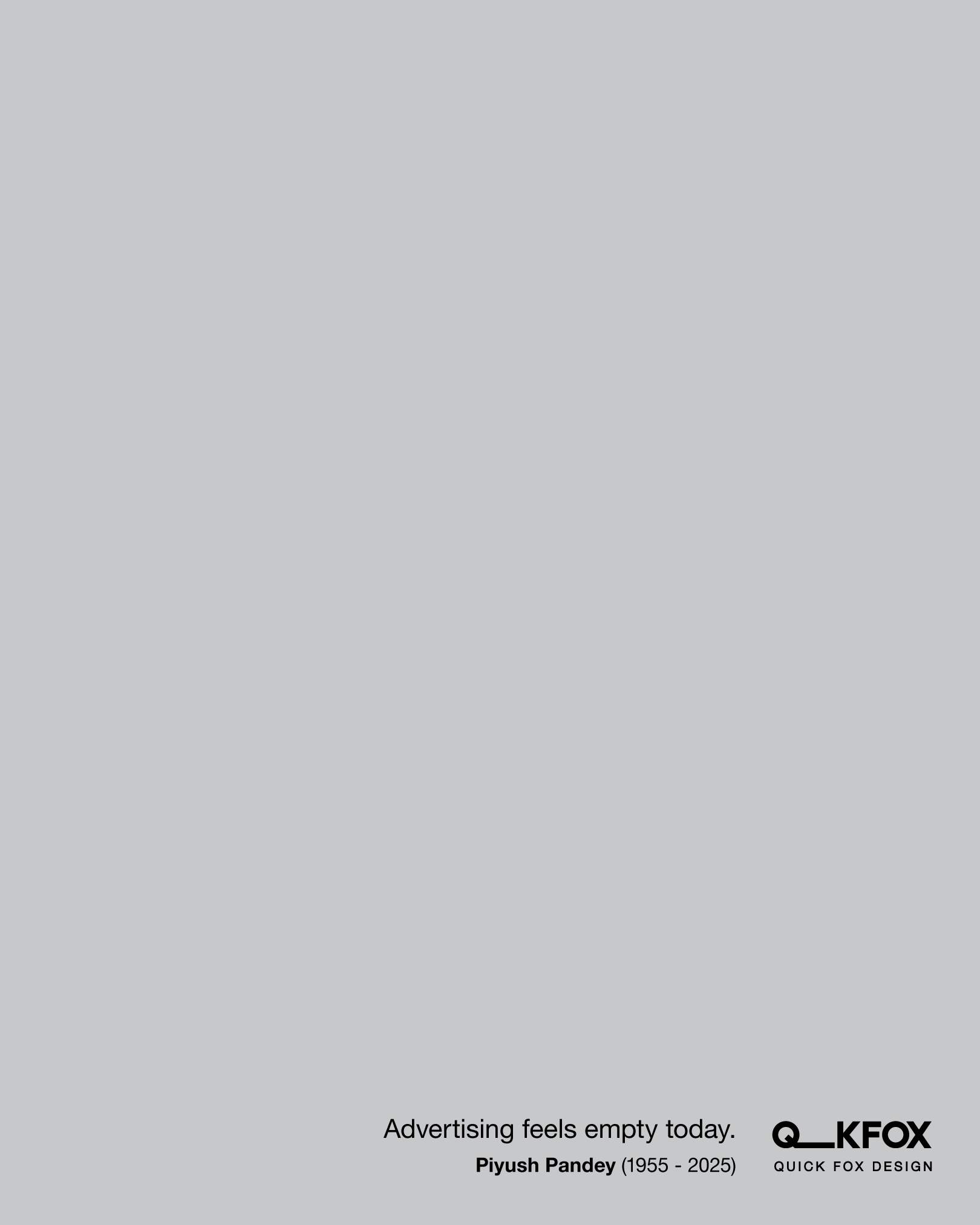 When the voice that defined Indian advertising fell silent, Quick Fox Design chose silence to speak for the industry. This minimalist tribute to Piyush Pandey uses an empty black canvas and a single line — “Advertising feels empty today” — to capture the profound absence left by his passing. Devoid of imagery or embellishment, the creative relies on restraint and emotion to communicate respect, loss, and the enduring influence of a true legend.