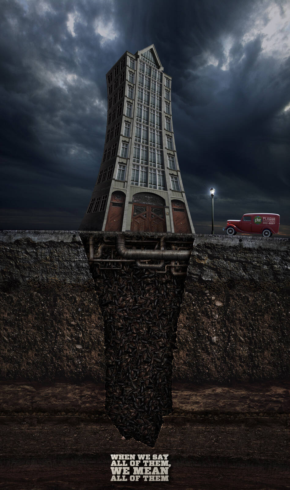 This professional campaign titled 'Plagued House, Plagued Building' was published in Peru in April, 2011. It was created for the brand: PTE Plague Exterminator, by ad agency: Aunt Poison & The Alien Mindbenders. This Print medium campaign is related to the House, Garden industry and contains 2 media assets. It was submitted over 14 years ago.