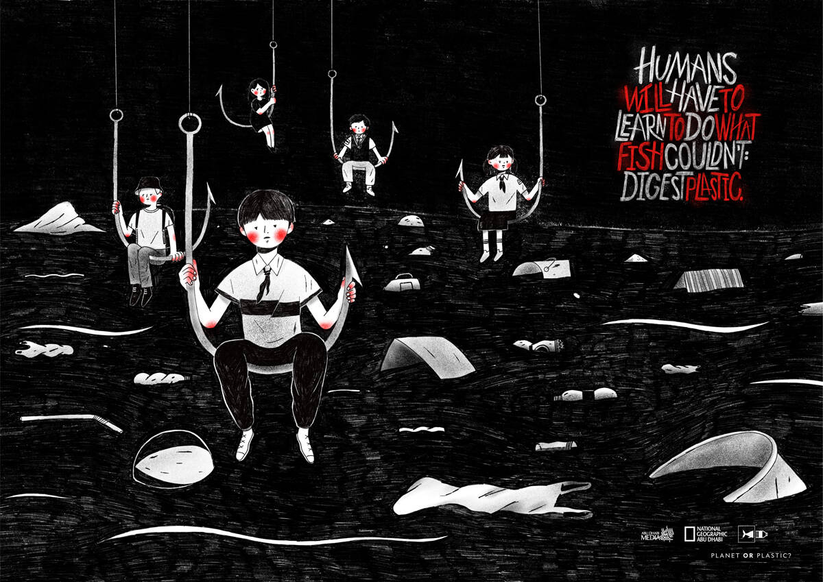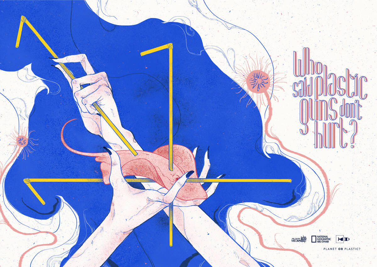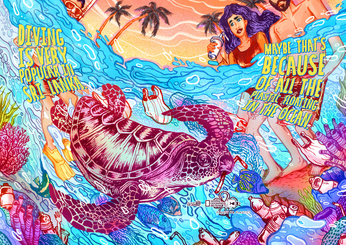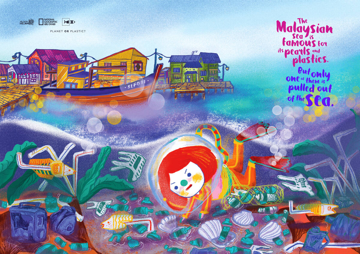 Last year, National Geographic launched its “Planet or Plastic?” project. This year, we invited 12 young artists from the 12 countries that suffer most from ocean plastic pollution to answer this question trough art and continue to spread the message. Each piece of art highlights the environmental and health impact of plastic waste on their country’s marine ecosystems and all who rely on them. Each one was inspired by real news and is accompanied by a short video explaining the artists' process and testimonial.