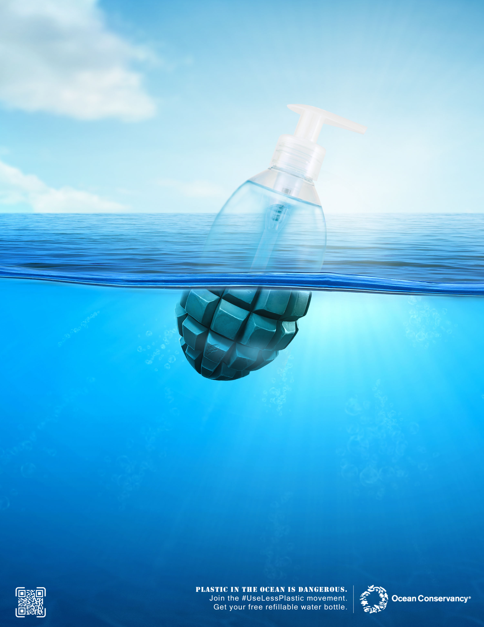 This student campaign titled 'Plastic is a Weapon' was published in United States in May, 2024. It was created for the brand: Ocean Conservancy, by ad school: S.I. Newhouse School of Public Communications. This Print medium campaign is related to the Public Interest industry and contains 3 media assets. It was submitted over 1 year ago by Art Director: Chon Kei Chan of S.I. Newhouse School of Public Communications.