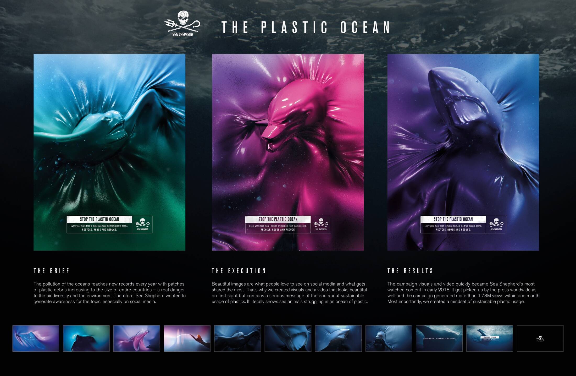 This professional campaign titled 'Plastic Ocean' was published in United States in April, 2018. It was created for the brand: Sea Shepherd, by ad agency: Fred & Farid. This Film medium campaign is related to the Public Interest industry and contains 2 media assets. It was submitted about 7 years ago.