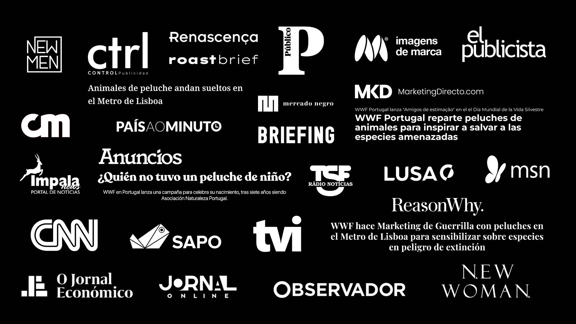 The campaign also had the support of more than 20 brands such as Delta Cafés, Jardim Zoológico Santo Inácio, Infraestruturas de Portugal, the Auchan group, El Corte Inglés, JCDecaux, MOP, AMC Entertainment Group, Lift Media, the Lisbon Metro, the Lisbon City Council and Sapo.