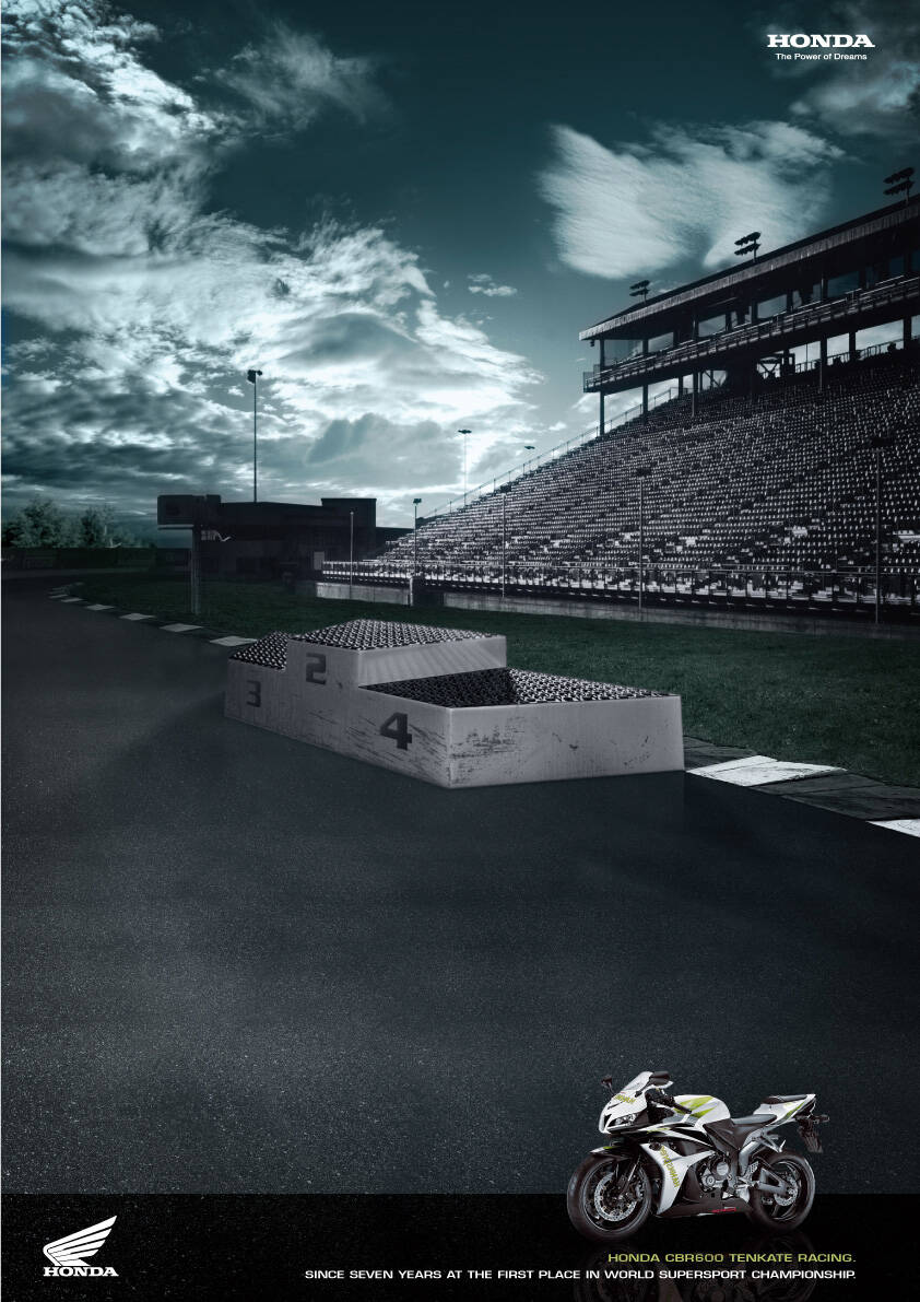 This professional campaign titled 'Podium' was published in Italy in January, 2008. It was created for the brand: Honda, by ad agency: LS&Partners. This Print medium campaign is related to the Automotive and Personal Transportation industry and contains 1 media asset. It was submitted over 17 years ago.