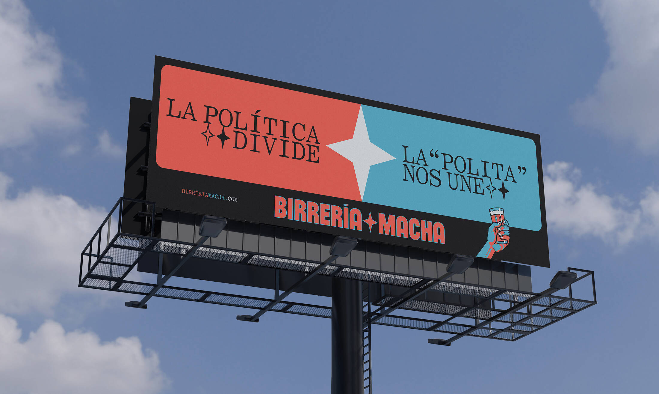 Amid Colombia’s current presidential election season, Birrería Macha saw an opportunity in that cultural nuance. Together with Siete Tías, the brand launched the outdoor campaign: “Politics divides. ‘Polita’ unites.”