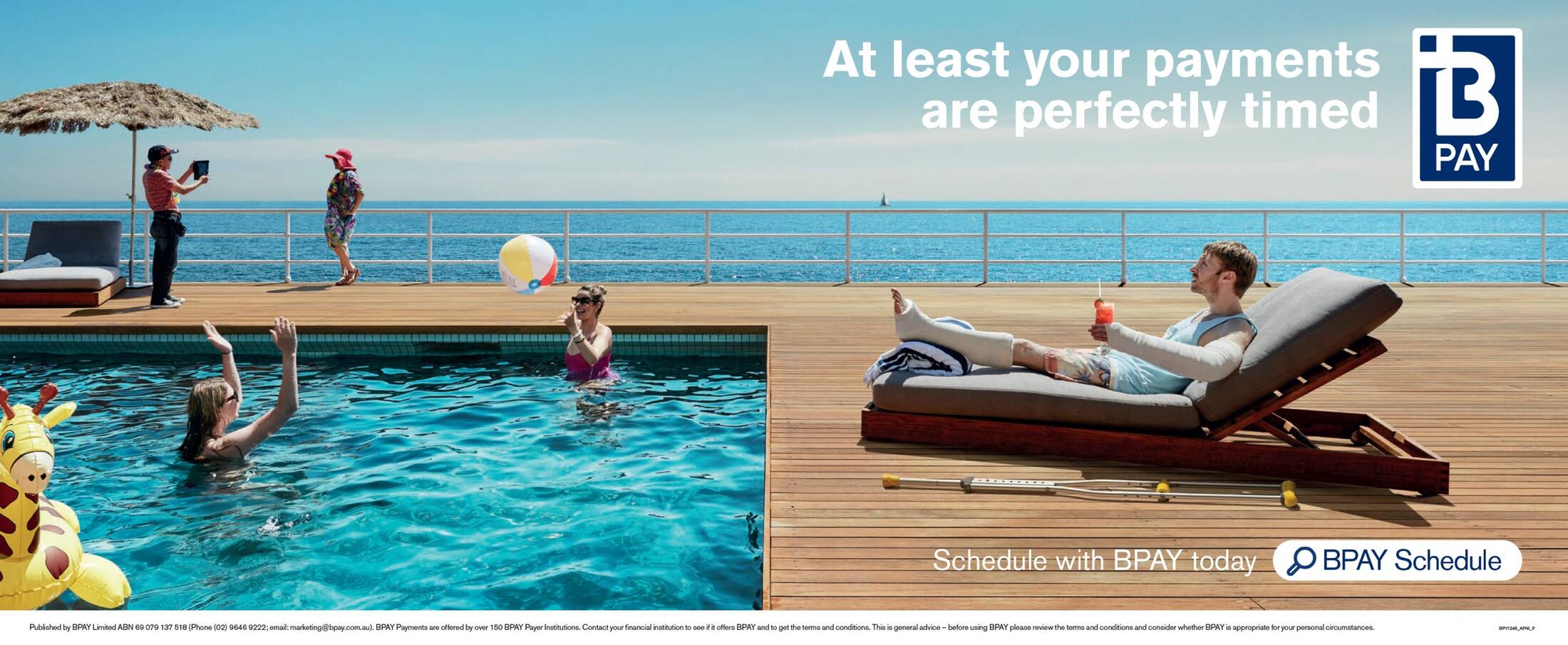 This professional campaign titled 'Pool, Car, Boots' was published in Australia in February, 2016. It was created for the brand: BPAY, by ad agency: BMF. This Print medium campaign is related to the Finance industry and contains 3 media assets. It was submitted almost 10 years ago.