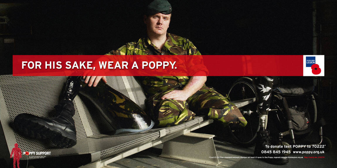 Poppy Appeal donations provide valuable support for ex-servicemen and their families. This years’ campaign dramatizes that the RBL also supports current service personnel by showing those directly and irreversibly affected by conflict in Iraq and Afghanistan.