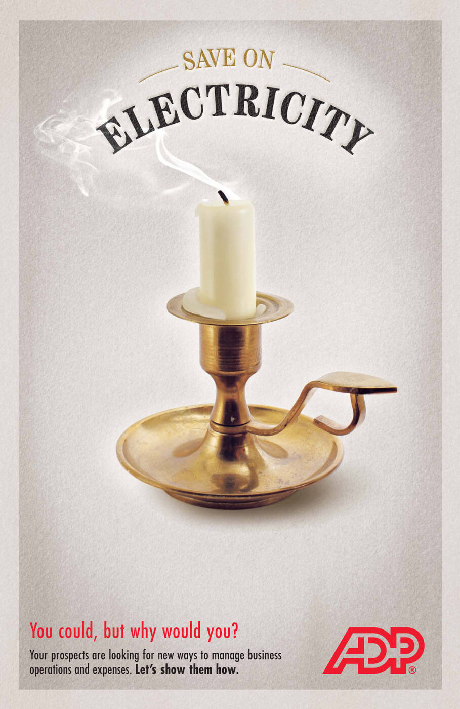 This professional campaign titled 'Postage, Candle, Fan, Candle' was published in Canada in May, 2009. It was created for the brand: ADP, by ad agency: The Brainstorm Group. This Print medium campaign is related to the Professional Services industry and contains 4 media assets. It was submitted about 16 years ago.