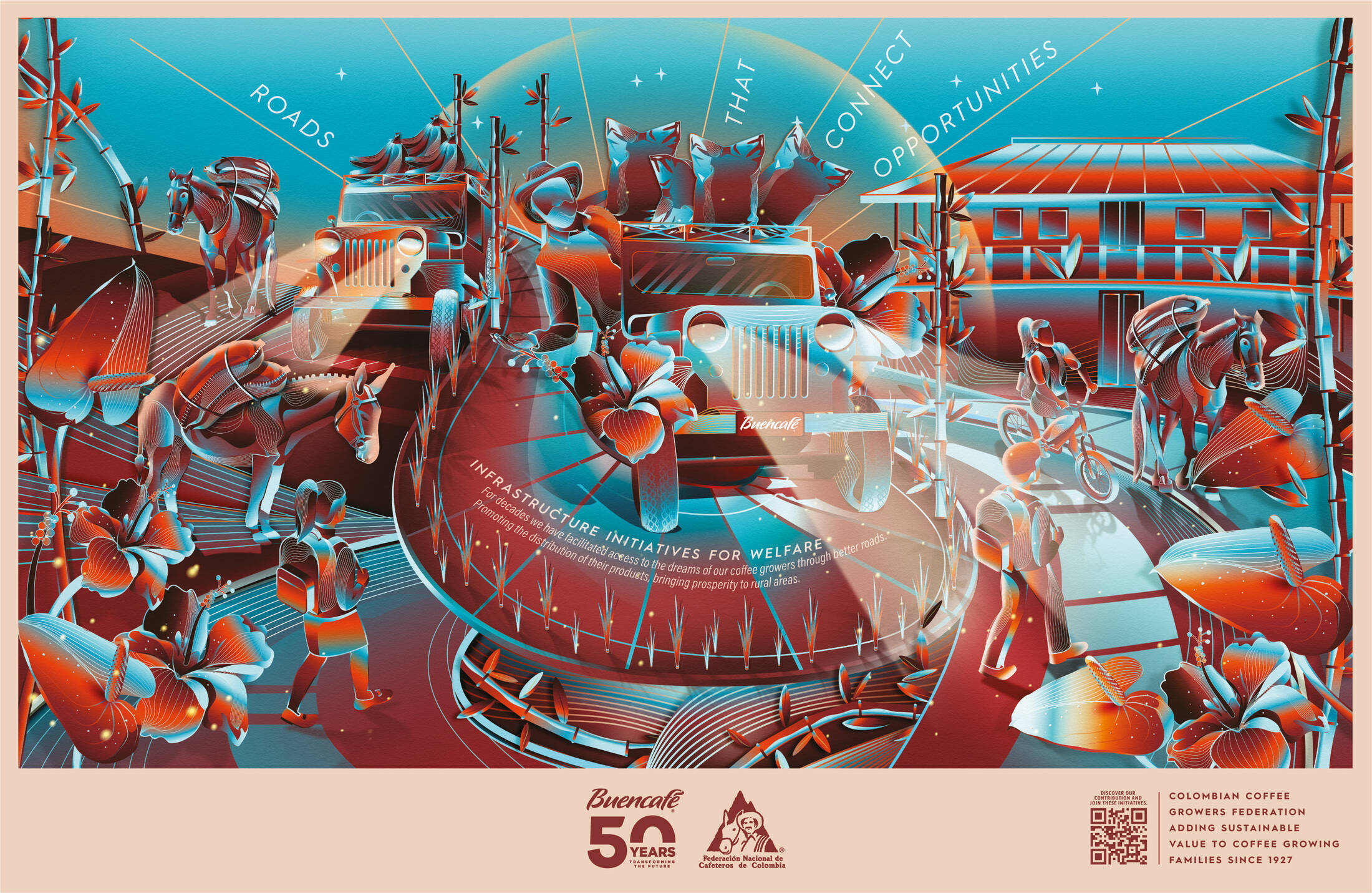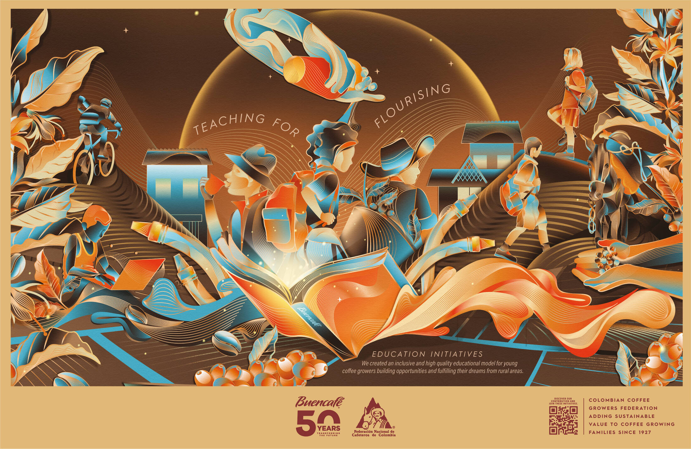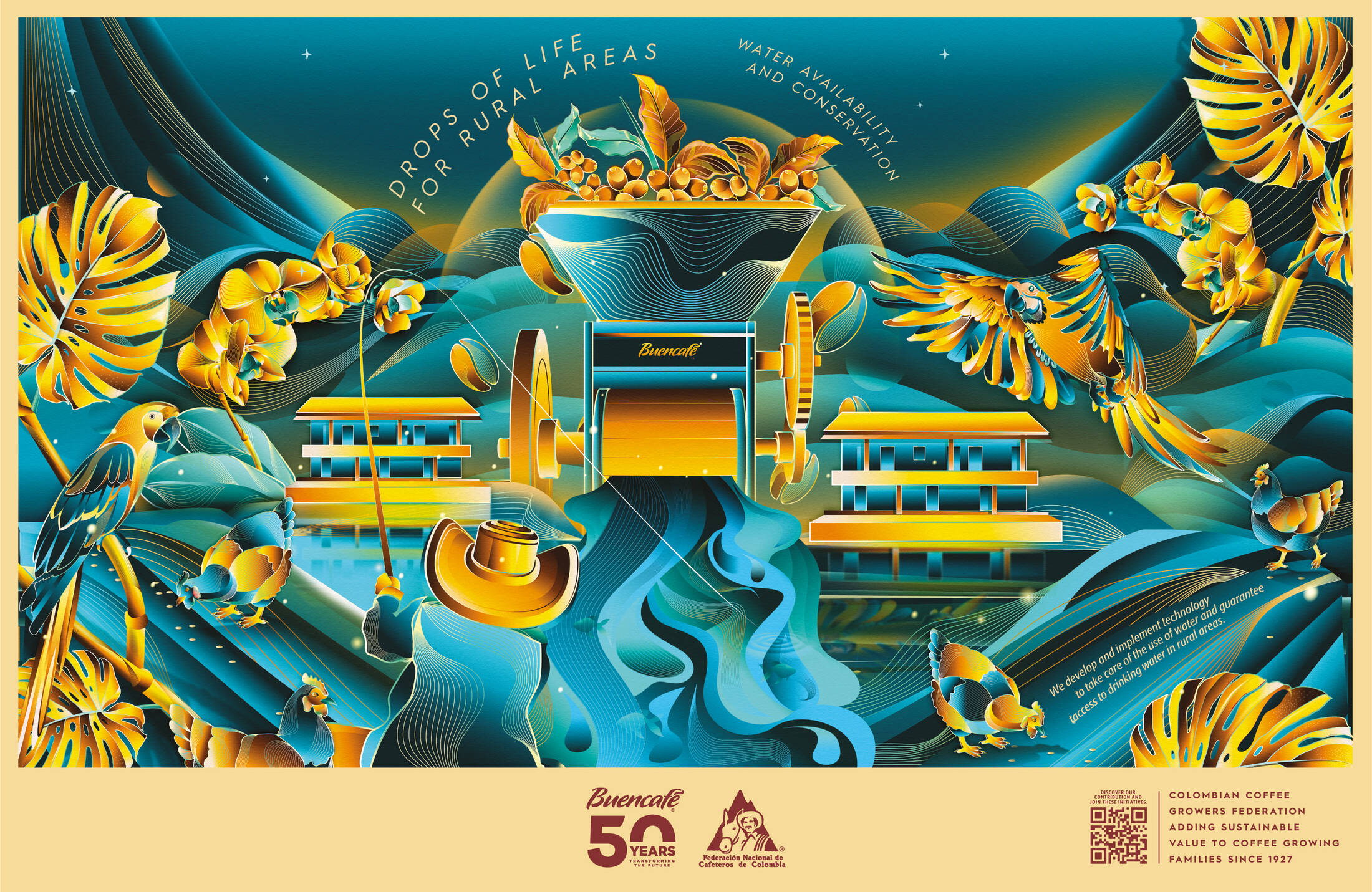 That’s why Buencafé, Colombia’s leading freeze-dried coffee factory, decided to commemorate its 50th anniversary by creating a series of postcards to rally support from various companies. Together, we aim to raise funds to bring water filtration systems, restroom repairs, and sports facility upgrades to forgotten schools. This initiative is transforming the lives of hundreds of children.
