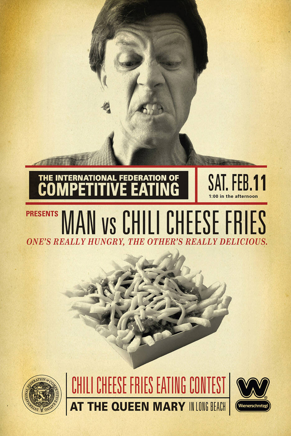 Posters to advertise the Chili Cheese Fries Eating Competition at the Queen Mary in Long Beach, California