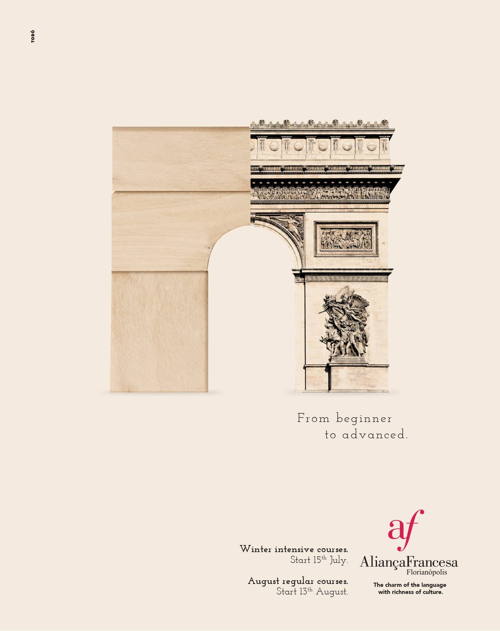 This professional campaign titled 'Pout, Tongue, Arc De Triomphe' was published in Brazil in June, 2014. It was created for the brand: Aliança Francesa, by ad agency: Toró Comunicação. This Print medium campaign is related to the Education industry and contains 3 media assets. It was submitted over 11 years ago.