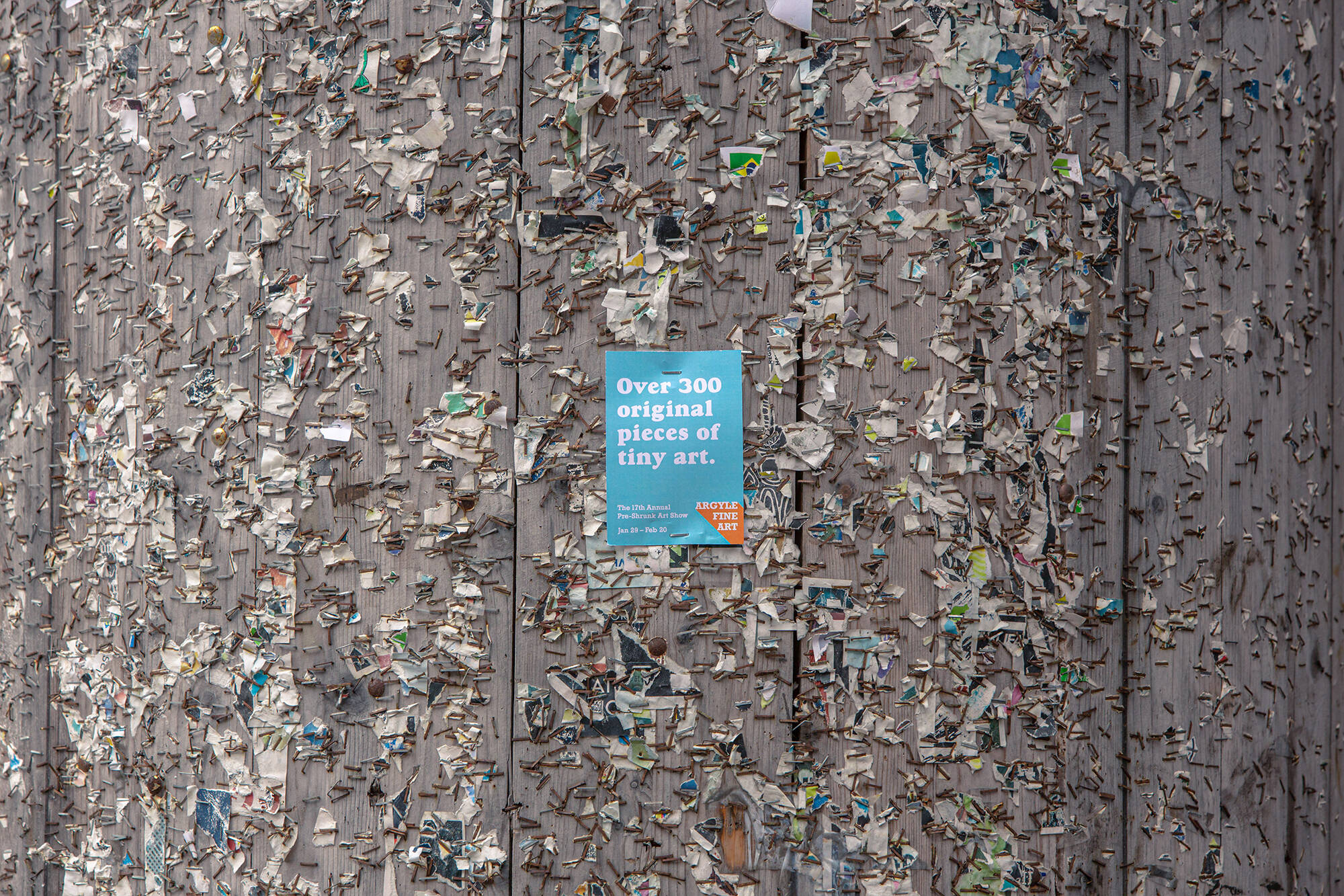For 17 years Argyle Fine Art has hosted the Pre-Shrunk Show at their Barrington St. gallery. The main difference with this art show is that all of the pieces are really small. Artists from all across Canada contribute 4” x 5” original works to be featured in the show. So in the true spirit of the art show, we created a series of tiny billboards and little posters encouraging locals to visit the show.