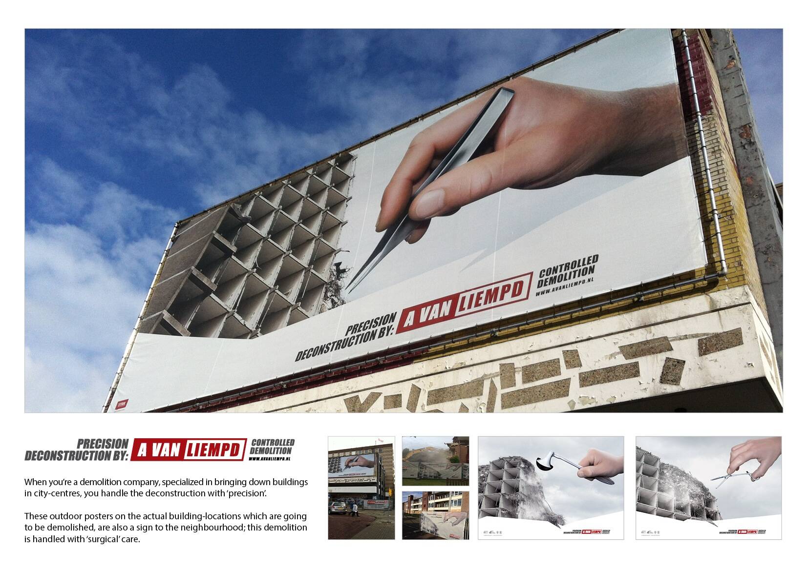 This professional campaign titled 'Precision' was published in The Netherlands in October, 2014. It was created for the brand: A van Liempd, by ad agency: STRIK Creative Concept Control. This OOH Outdoor medium campaign is related to the Professional Services industry and contains 1 media asset. It was submitted about 11 years ago.