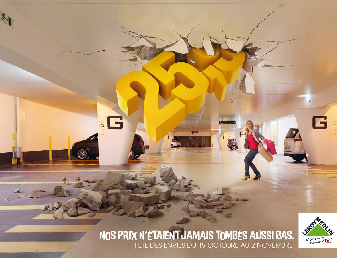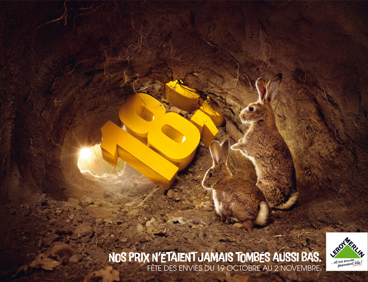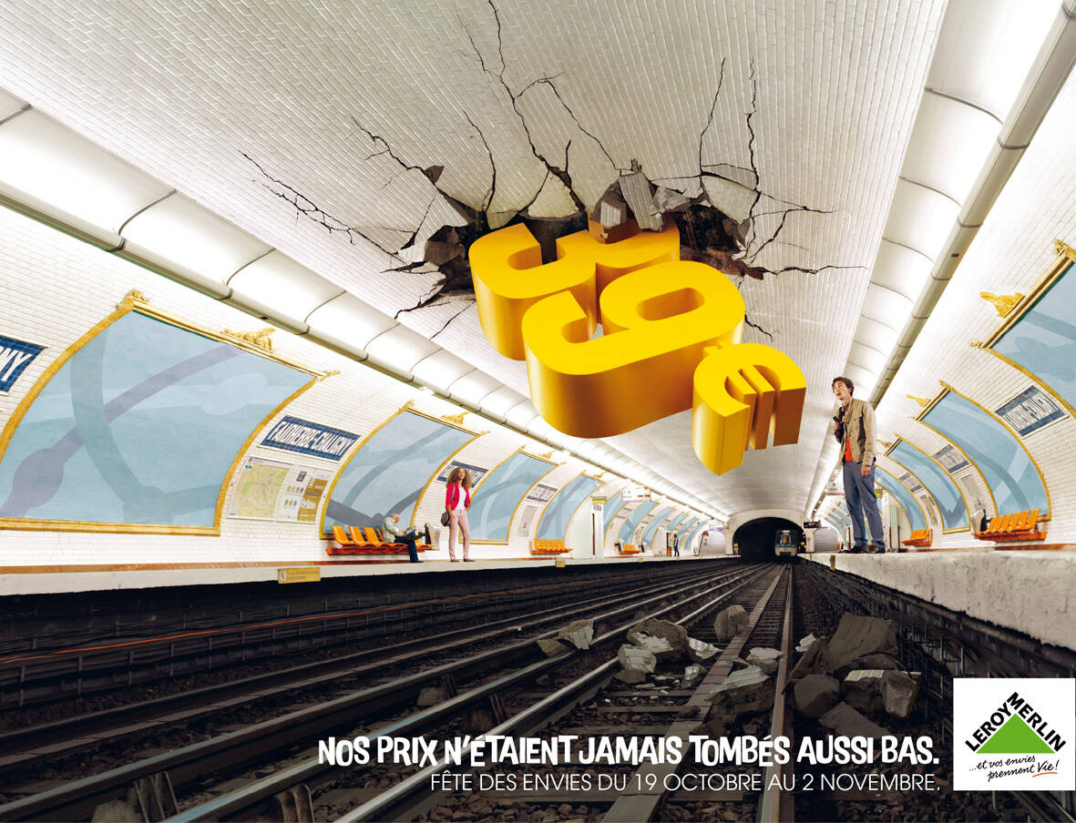 This professional campaign titled 'Price drop' was published in France in October, 2011. It was created for the brand: Leroy Merlin, by ad agency: Kuryo. This Print medium campaign is related to the Retail Services industry and contains 3 media assets. It was submitted almost 14 years ago.