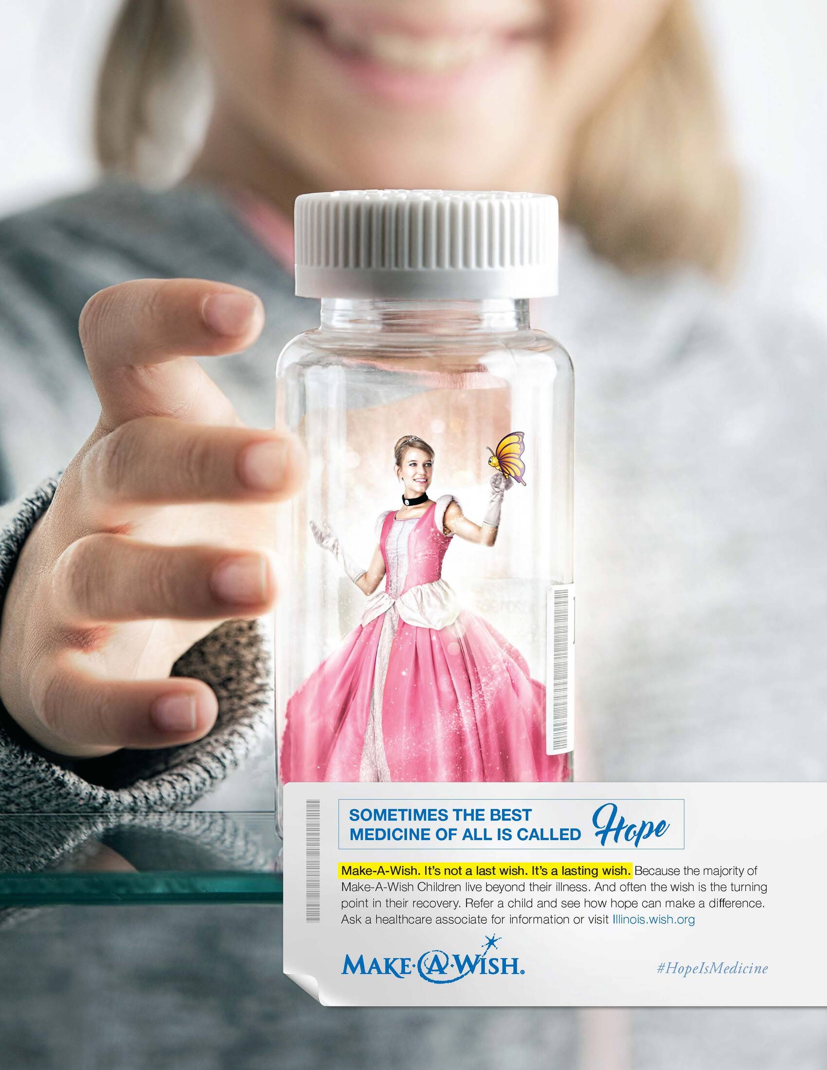 This professional campaign titled 'Princess, Fairy, Dolphin' was published in United States in January, 2018. It was created for the brand: Make-A-Wish, by ad agency: Gyro. This Print medium campaign is related to the Public Interest industry and contains 3 media assets. It was submitted almost 8 years ago.