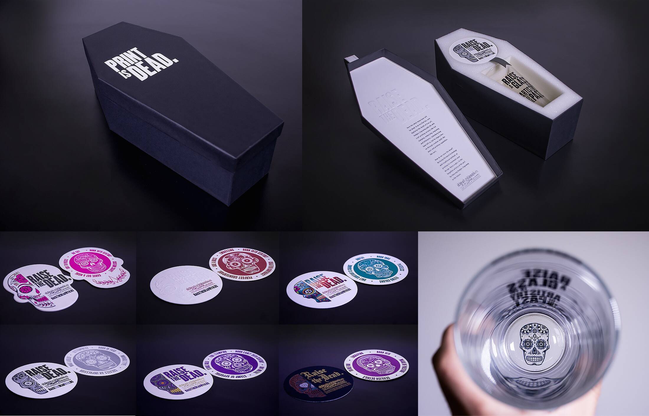 A campaign focused on local creatives to help them understand the capabilities offered by Hodgins Engraving and the artistry that traditional printing techniques offers. Each coster demonstrated a different print technique and was reenforced with a custom designed skull. The glass that was mailed out read “help us raise a glass to the artistry of the past”.