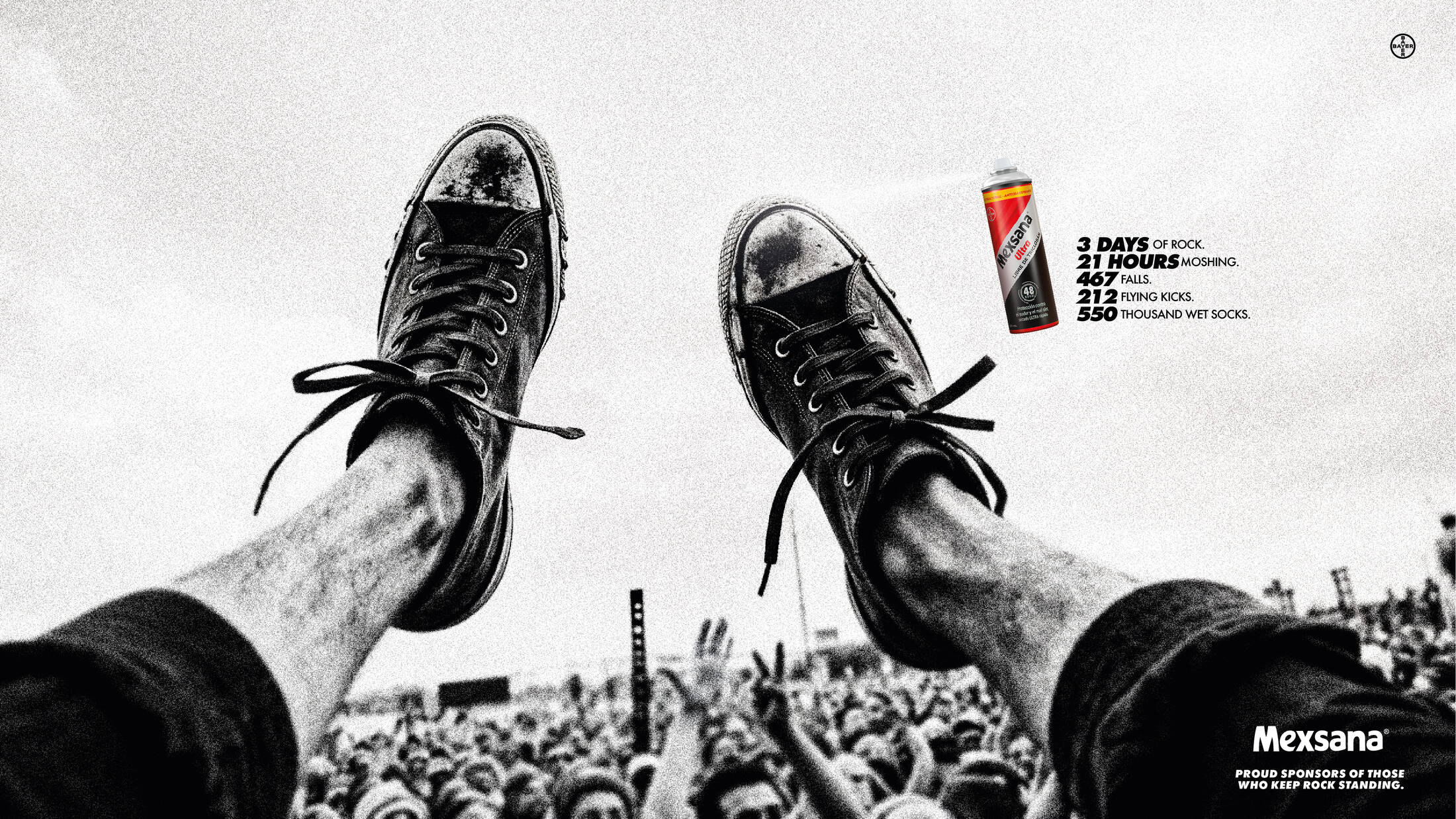 This professional campaign titled 'PROUD SPONSORS OF THOSE WHO KEEP ROCK STANDING.' was published in Colombia in June, 2025. It was created for the brand: Mexsana, by ad agency: DENICOLÁS\TBWA. This Digital and Print media campaign is related to the Beauty and Health industries and contains 4 media assets. It was submitted 5 months ago.