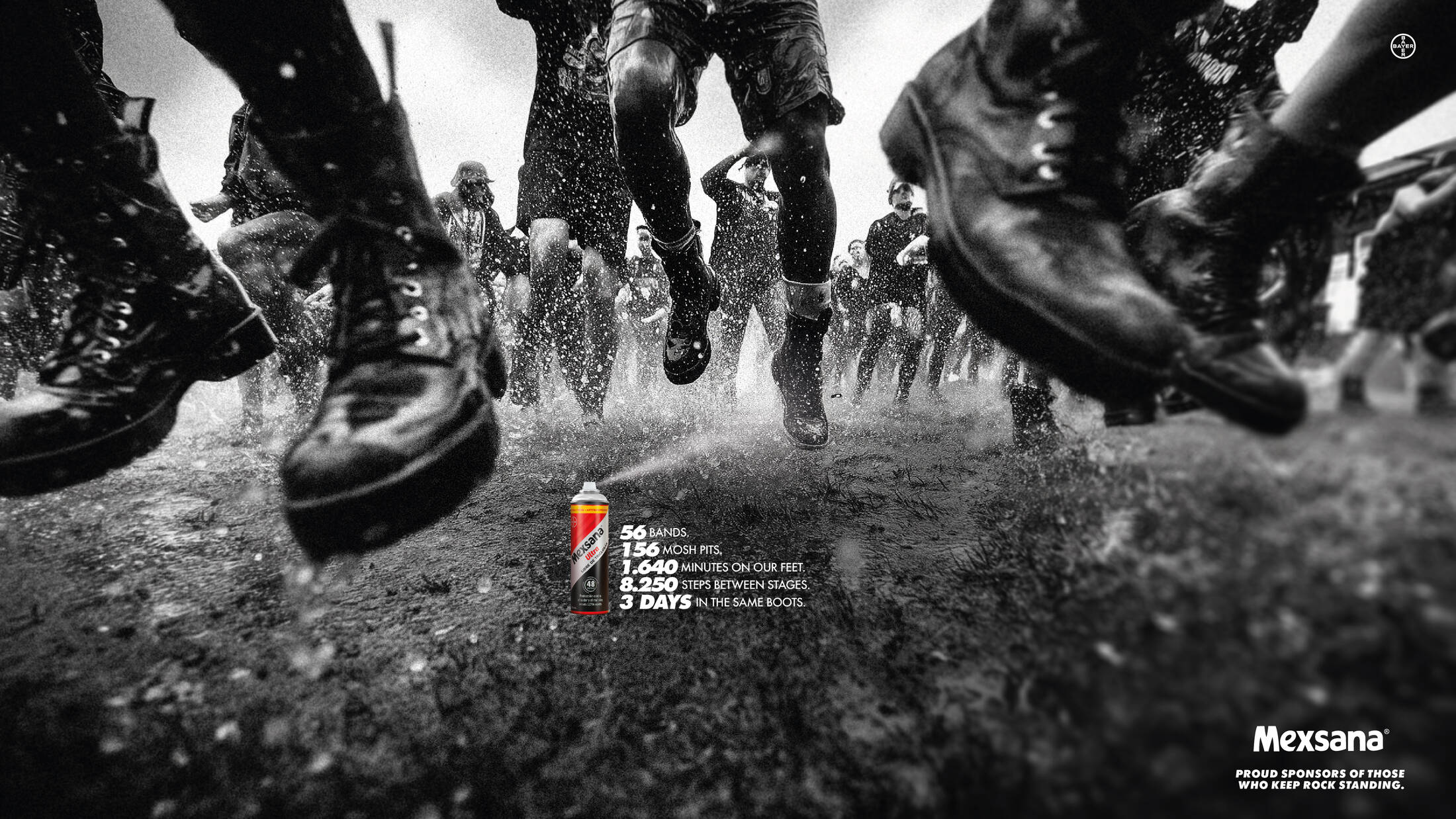 With a documentary-style aesthetic, unretouched, we transformed Mexsana’s freshness into a symbol of resilience. Because rock isn't just heard—it’s walked, jumped, sweated, and celebrated from the ground up. And with a bit of relief, even after hours of moshing, the rock goes on—and the feet do too.