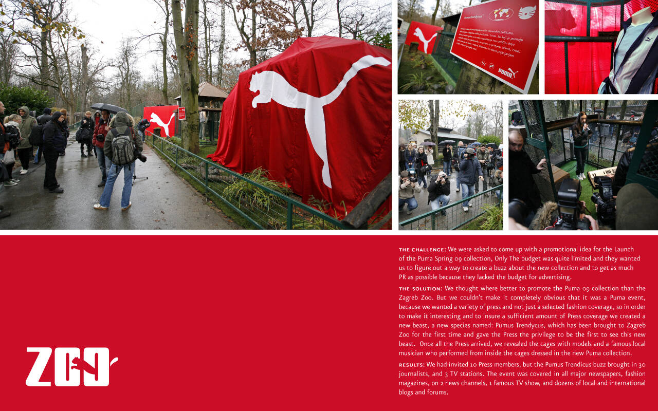 This professional campaign titled 'Pumus Trendycus' was published in Croatia in November, 2008. It was created for the brand: Puma, by ad agency: Bruketa & Zinic. This Ambient medium campaign is related to the Fashion industry and contains 1 media asset. It was submitted almost 17 years ago.