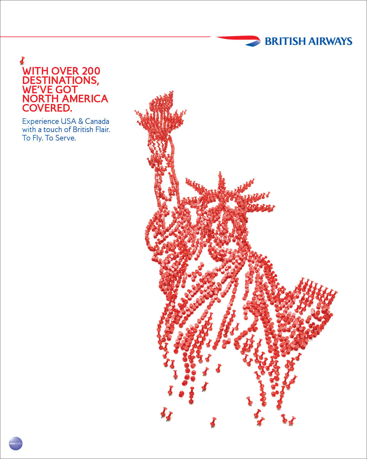 This professional campaign titled 'Push Pins, Rodeo, Push Pins, Statue of Liberty' was published in United Kingdom in October, 2012. It was created for the brand: British Airways, by ad agency: BBH. This OOH Outdoor medium campaign is related to the Transport industry and contains 2 media assets. It was submitted about 13 years ago.