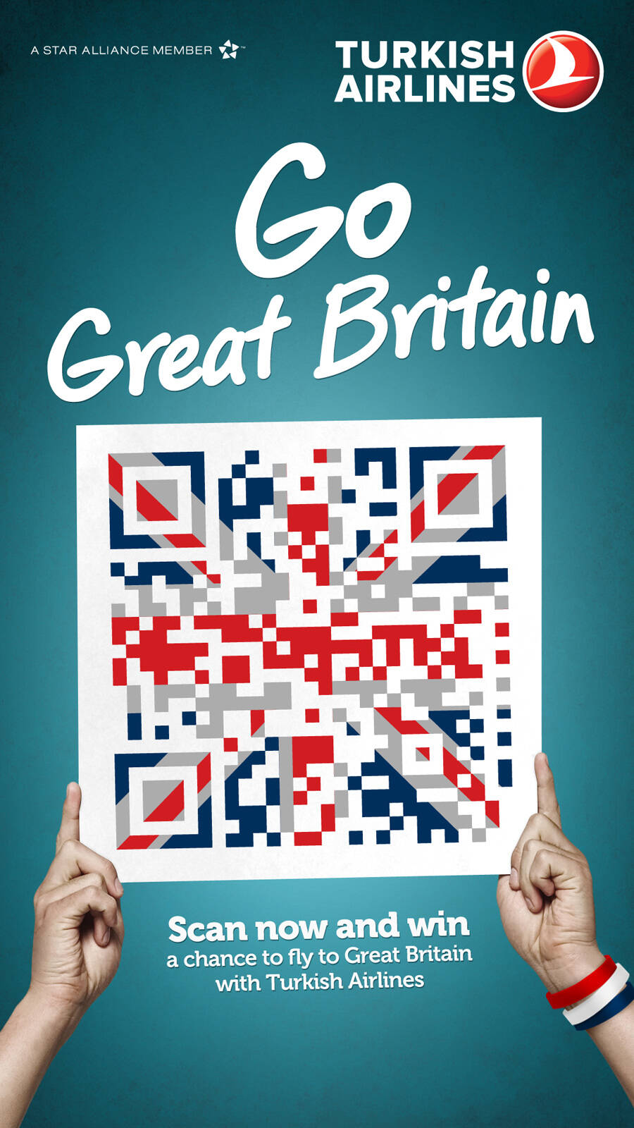 This professional campaign titled 'QR Flags, Germany, QR Flags, Great Britain, QR Flags, Hon...' was published in Turkey in July, 2012. It was created for the brand: Turkish Airlines, by ad agency: McCann. This OOH Outdoor medium campaign is related to the Transport industry and contains 3 media assets. It was submitted over 13 years ago.