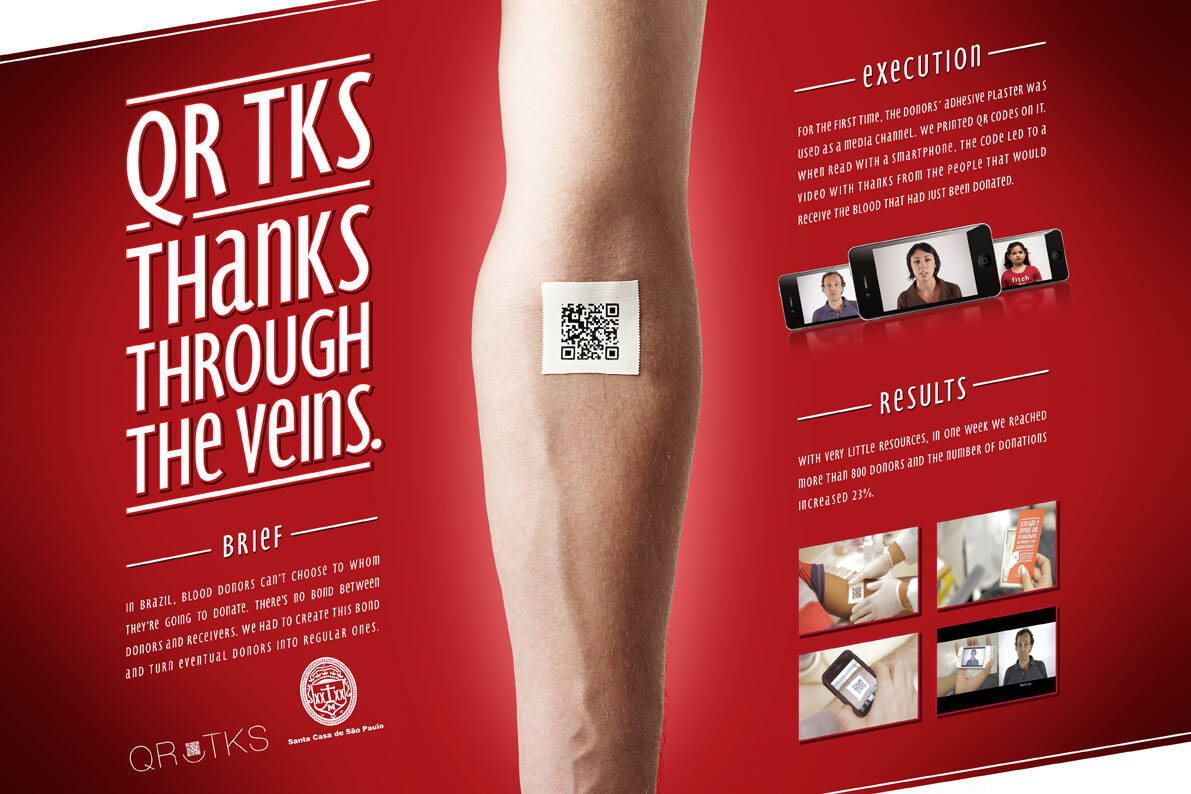 This professional campaign titled 'QR TKS' was published in Brazil in April, 2012. It was created for the brand: Santa Casa, by ad agency: Y&R. This Static Images medium campaign is related to the Public Interest industry and contains 1 media asset. It was submitted over 13 years ago.