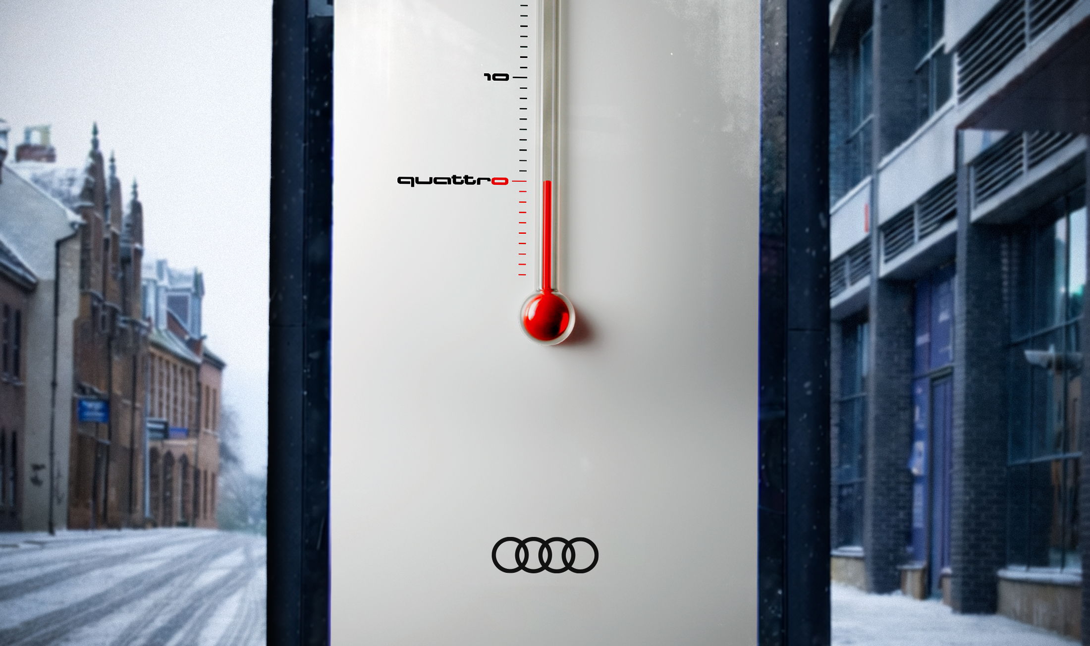 Audi responds to that moment with a visual cue everyone instinctively understands: a thermometer falling towards zero. With programmatic, weather-triggered DOOH, as the temperature hits freezing, the message locks into place - #AudiQuattroSeason. No explanation is needed. The creative reflects how people are already talking, turning quattro from a technical feature into a cultural signal.